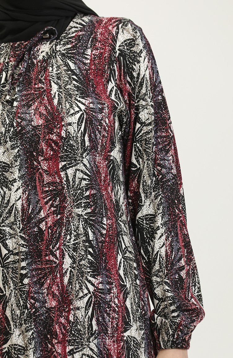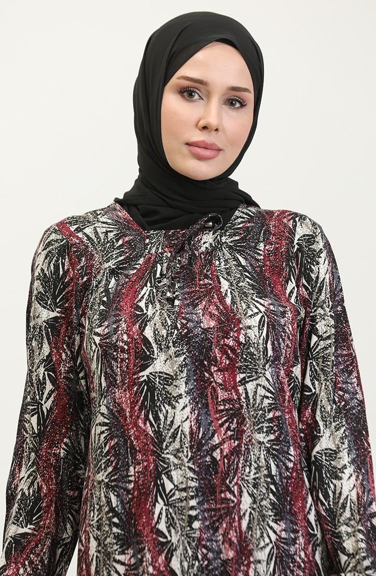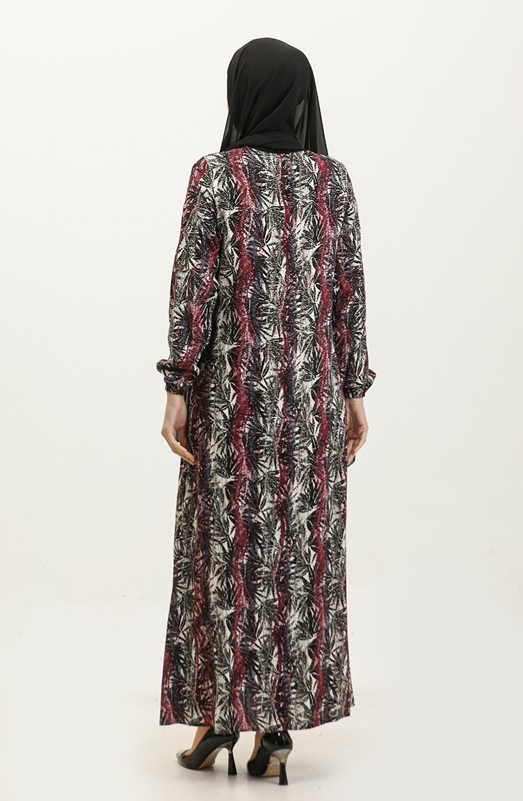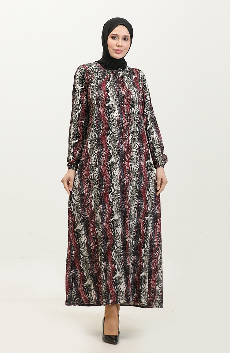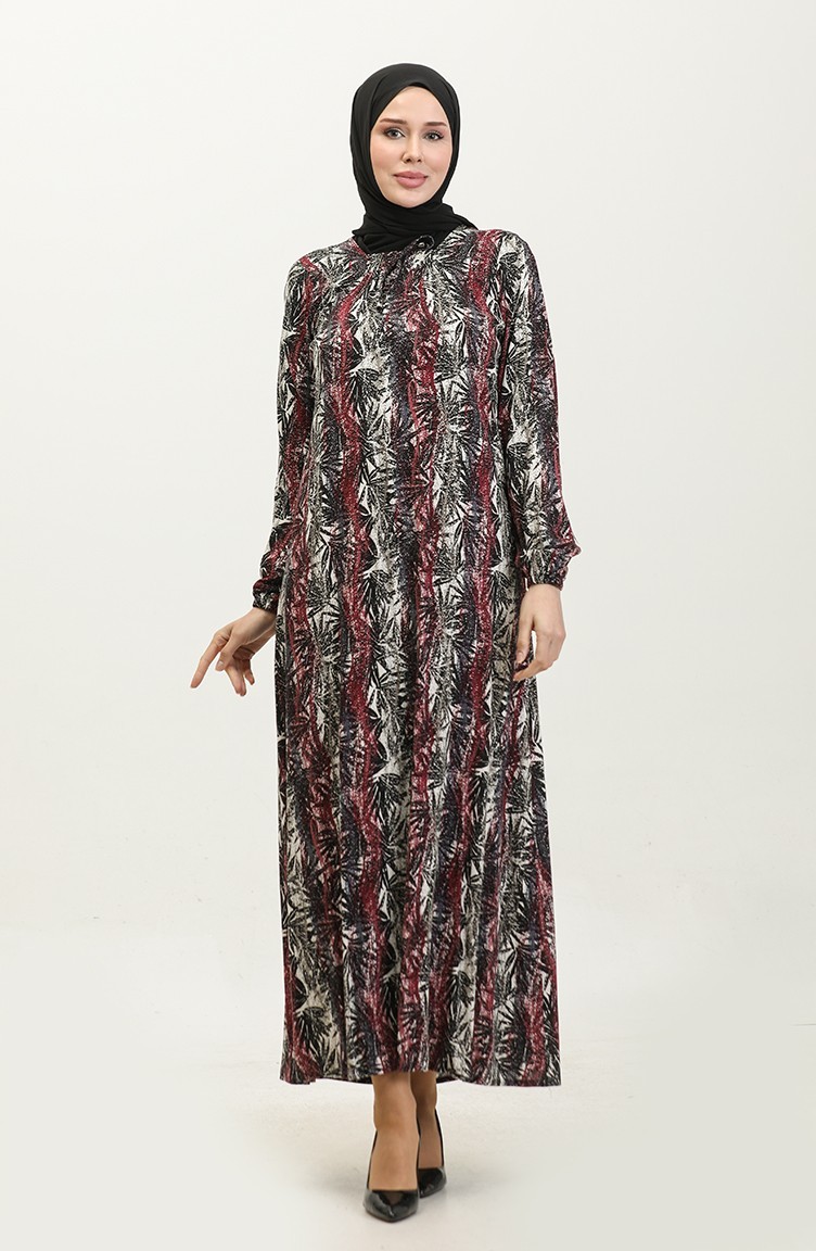 Büyük Beden Desenli Viskon Elbise 44851F-04 Mürdüm