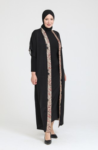 Büyük Beden Elbise Abaya İkili Takım 8103-04 Siyah Bordo