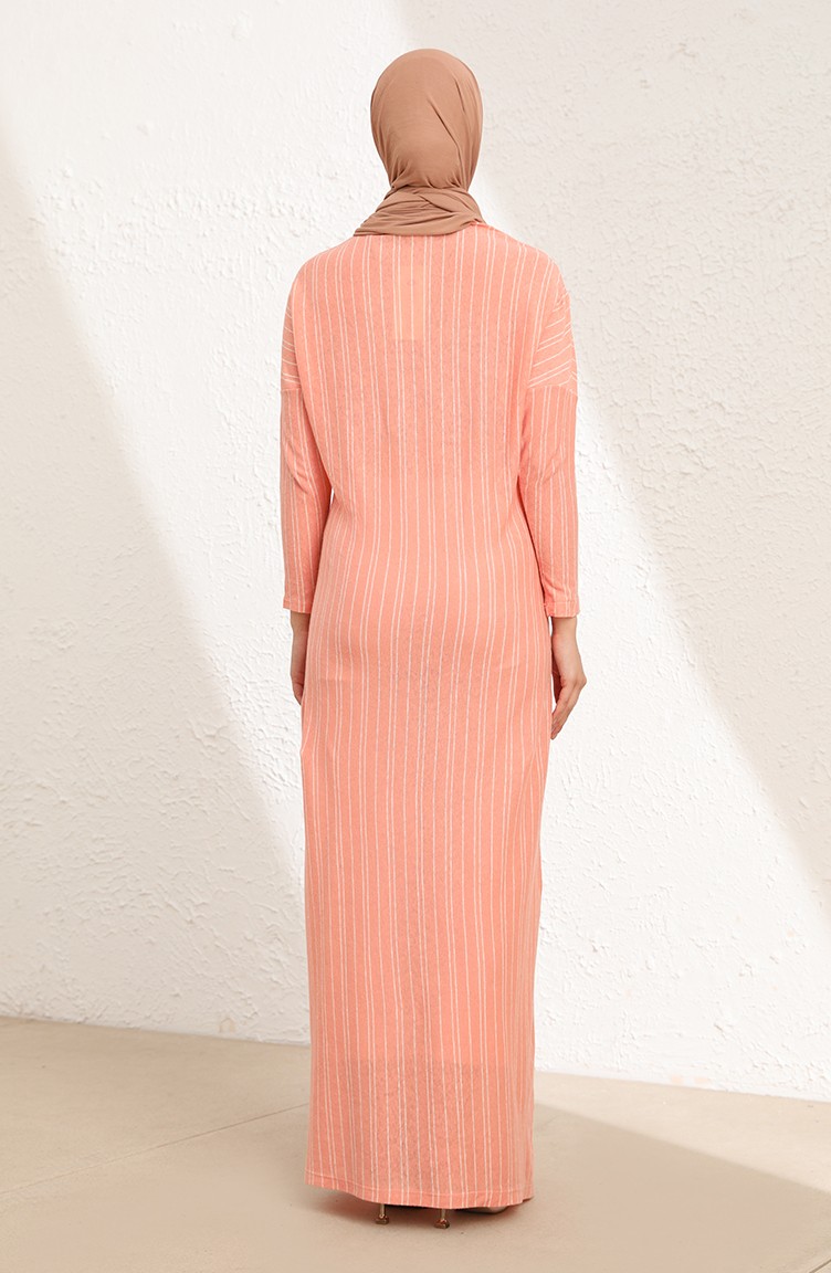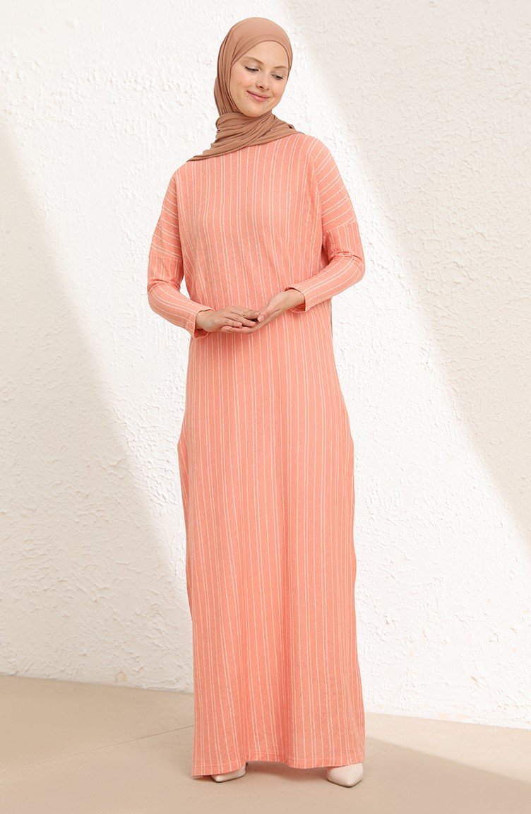 Çizgili Mevsimlik Uzun Elbise 8506-03 Yavruağzı