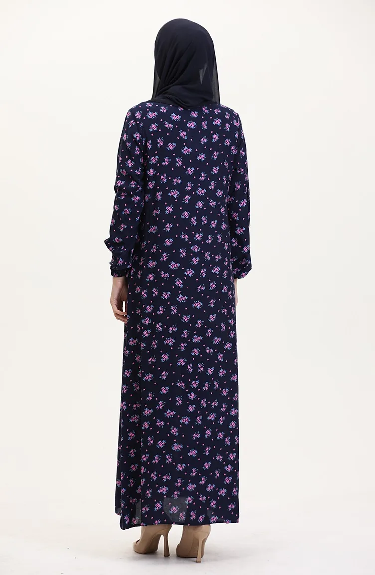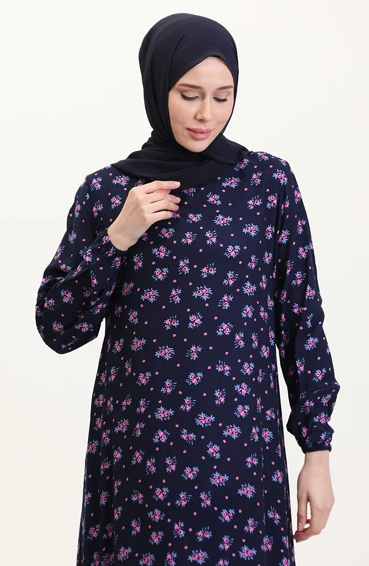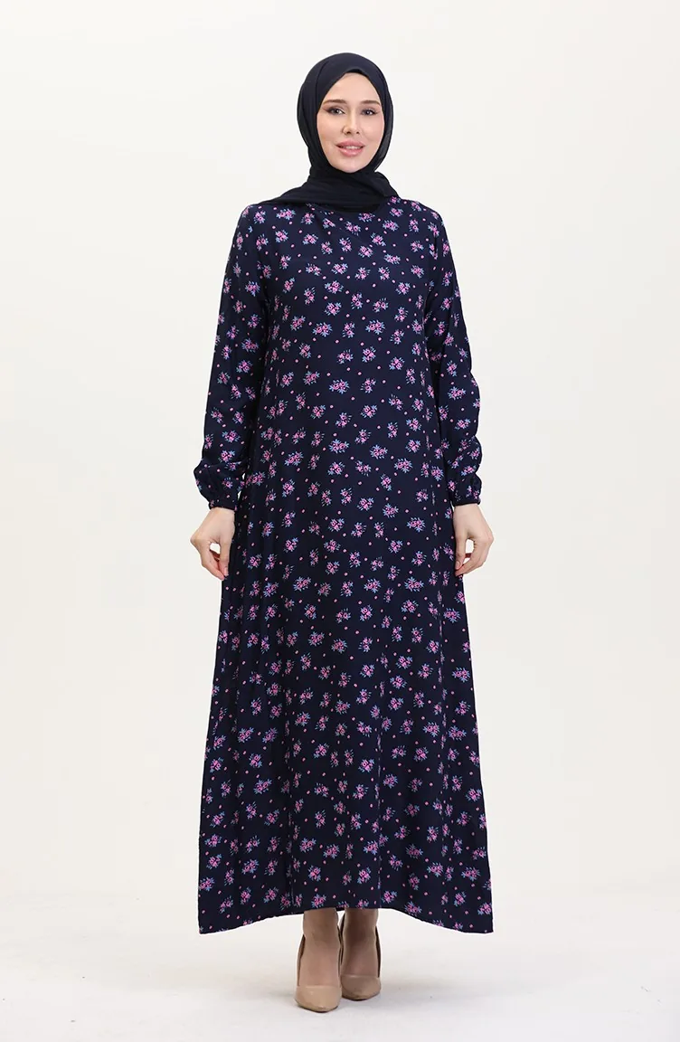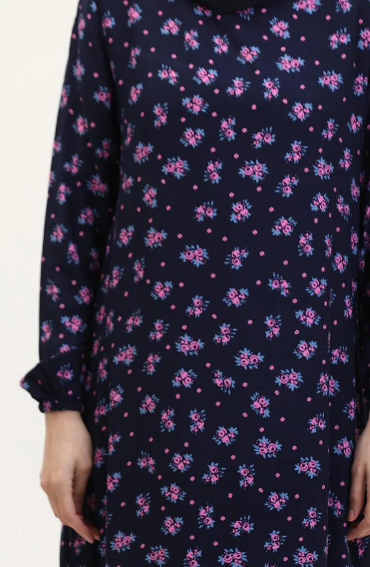 Lacivert renktedir. Viskon kumaş. Desenli kumaş. Lastik kollu. Sıfır yaka detayı ile rahat kullanıma sahiptir. 4 Mevsim tercih edebilirsiniz. Büyük beden seçeneği mevcuttur.