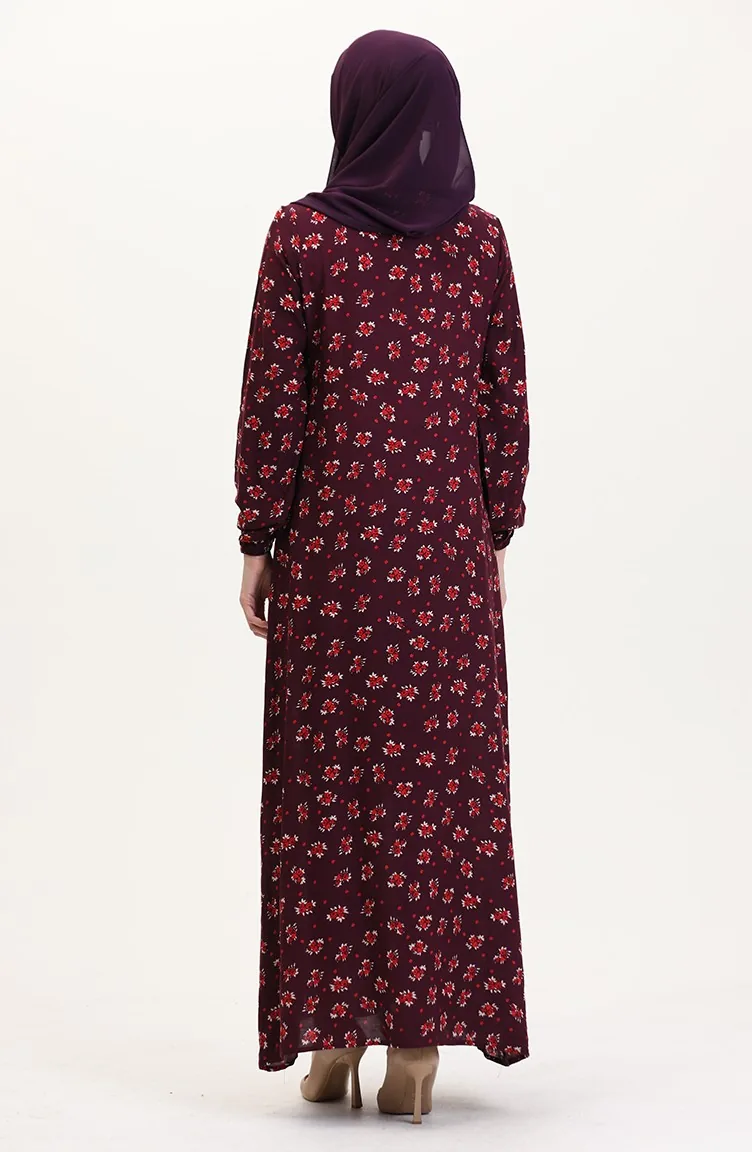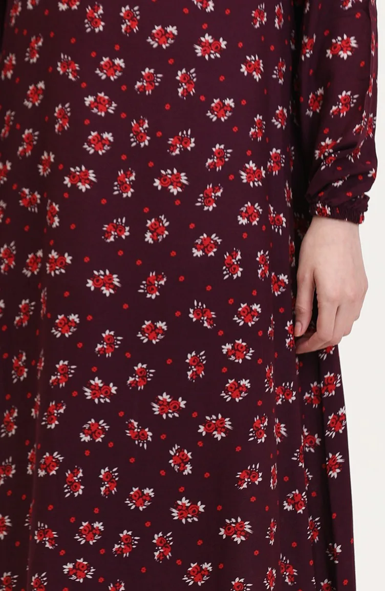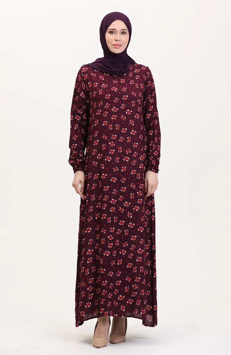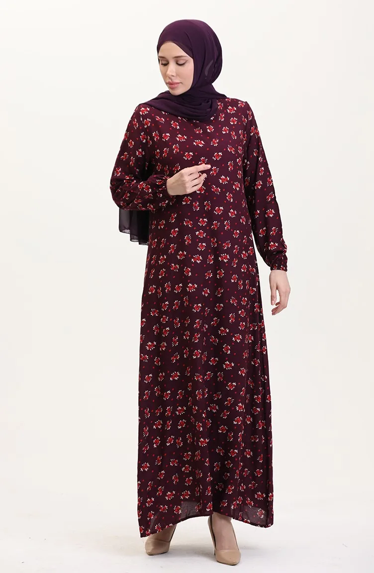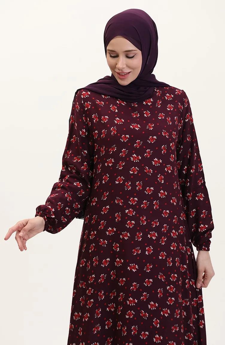 Desenli Viskon Elbise 0007-03 Mürdüm