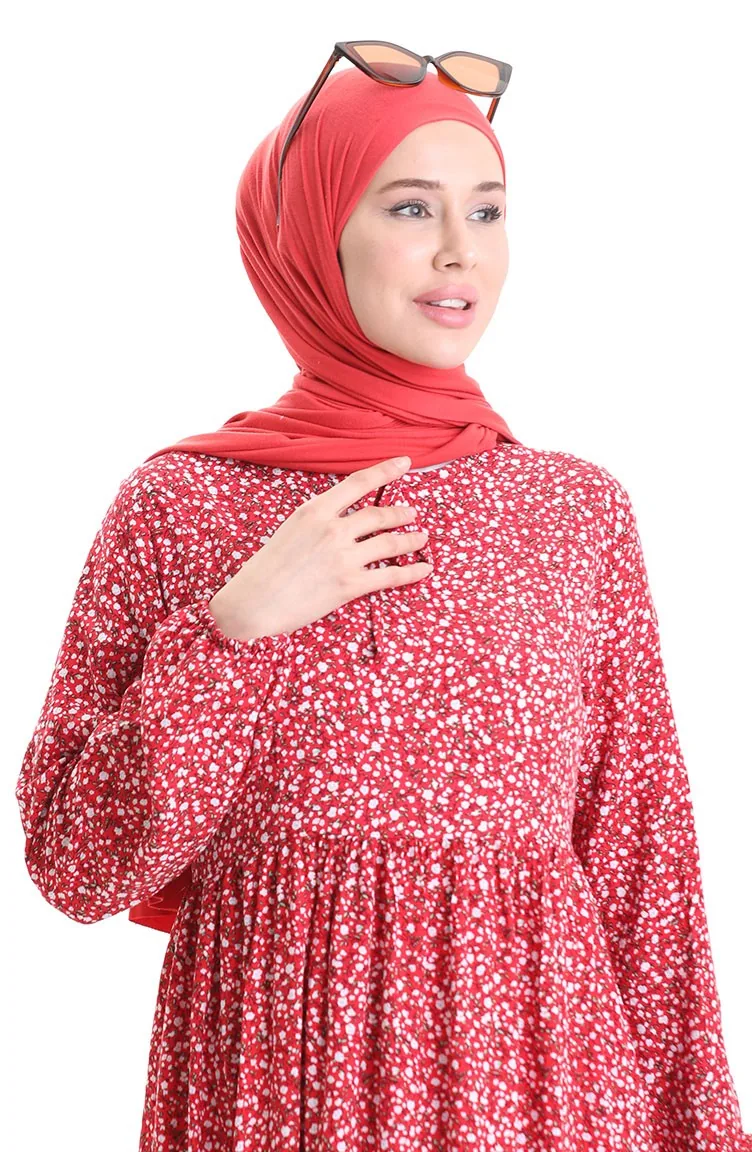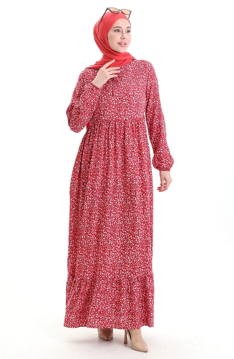 Desenli Viskon Elbise 81865-05 Bordo