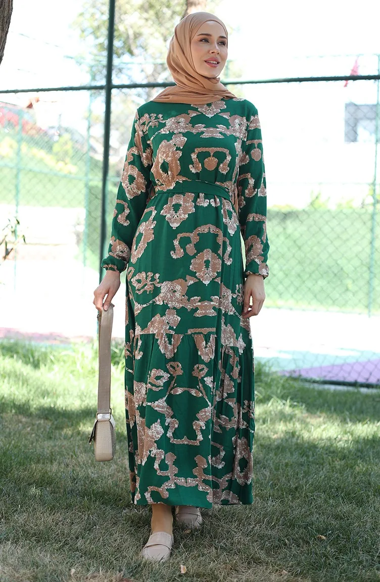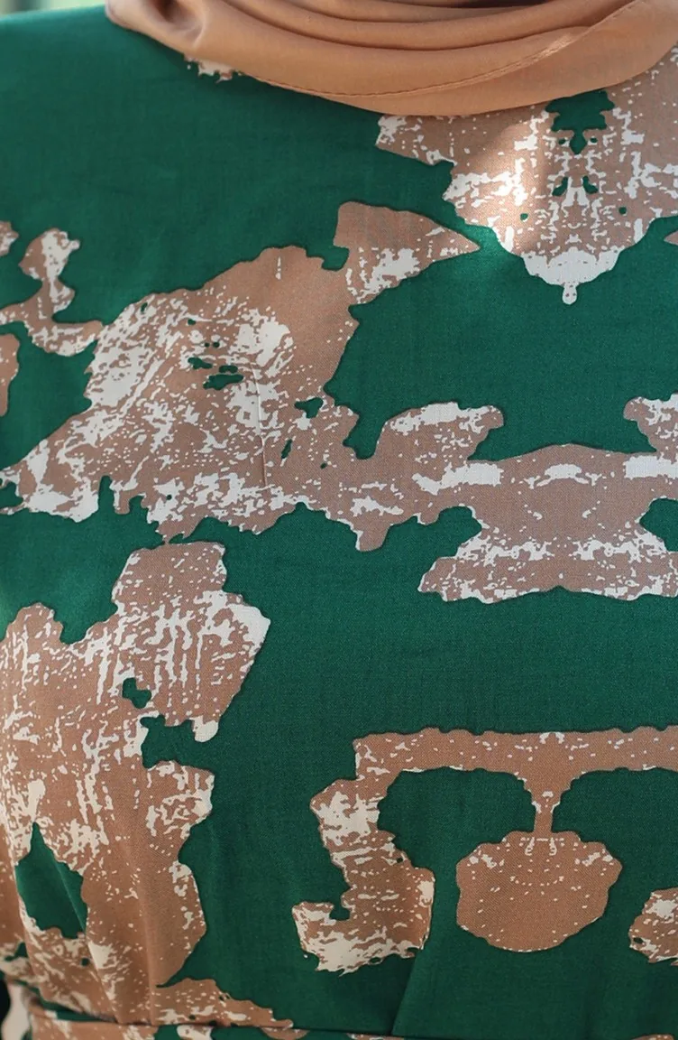 Desenli Viskon Elbise 81872A-04 Yeşil Vizon