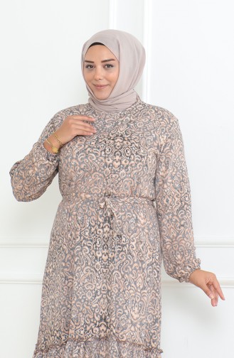 Destan Desenli Bürümcük Farbalı Elbise 46-56 Beden 4571İ-02 Gri