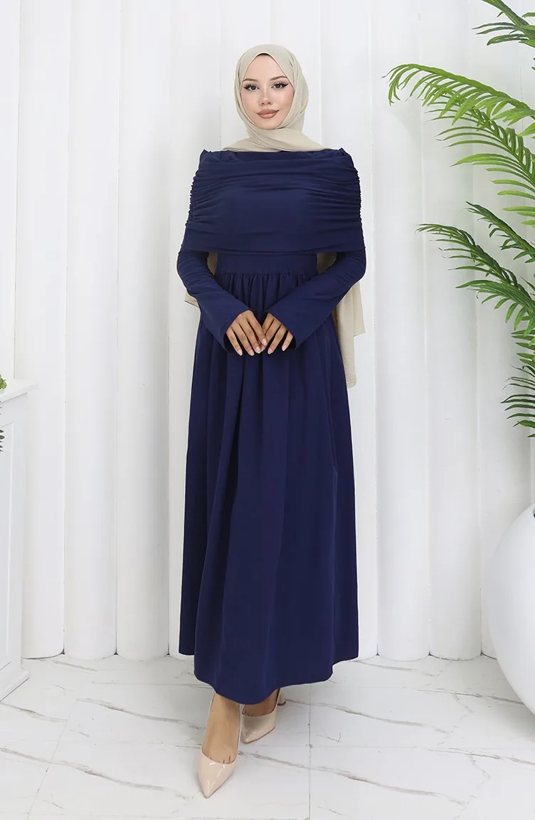 Drapeli Madonna Yaka Tesettür Elbise 81900-02 Lacivert