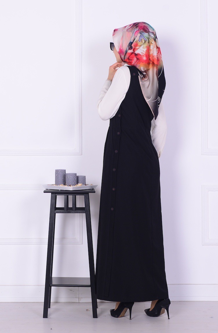 Düğme Detaylı Jile Elbise 2516-01 Siyah