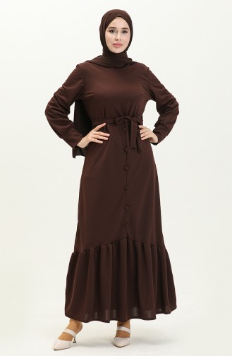 Düğme Detaylı Kuşaklı Elbise 1667-05 Kahverengi