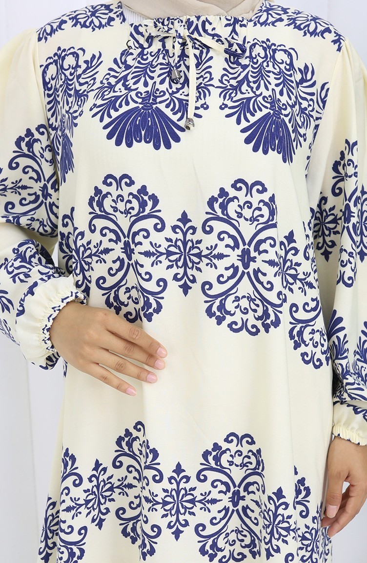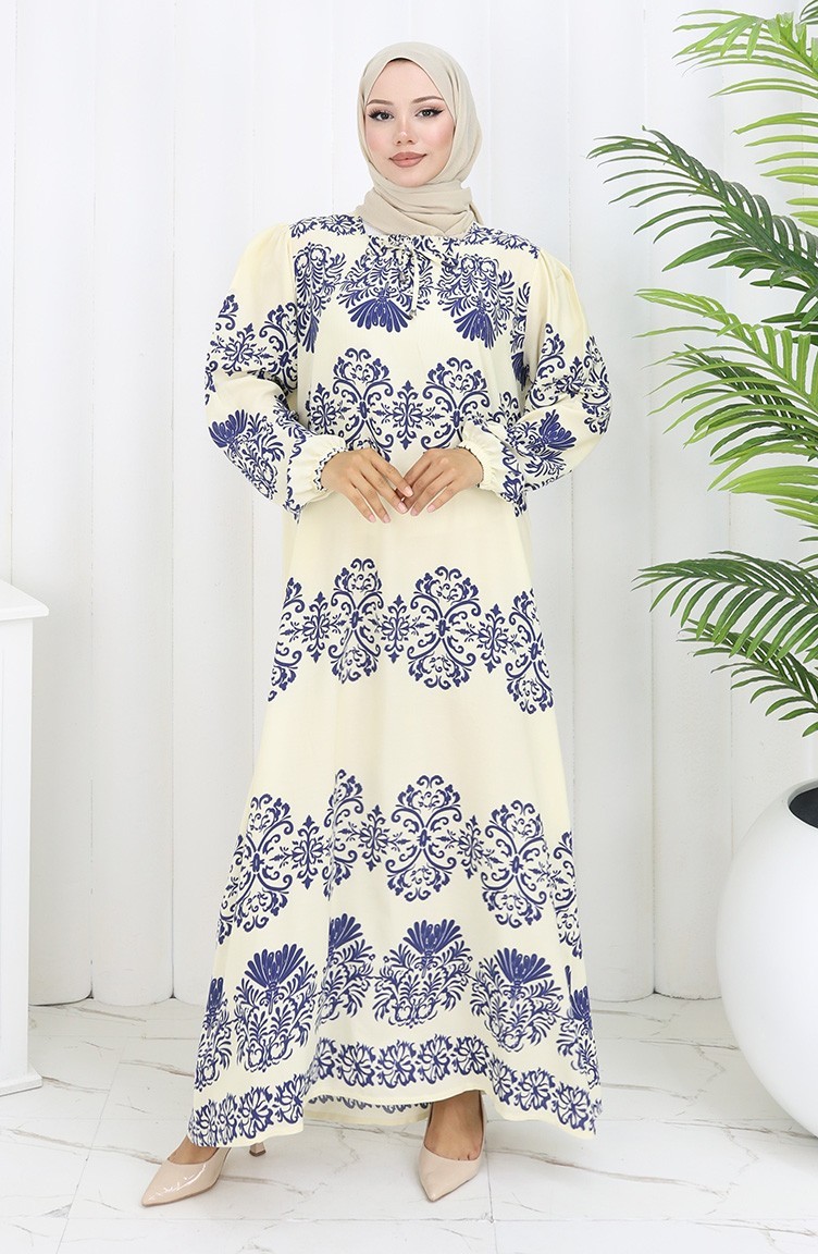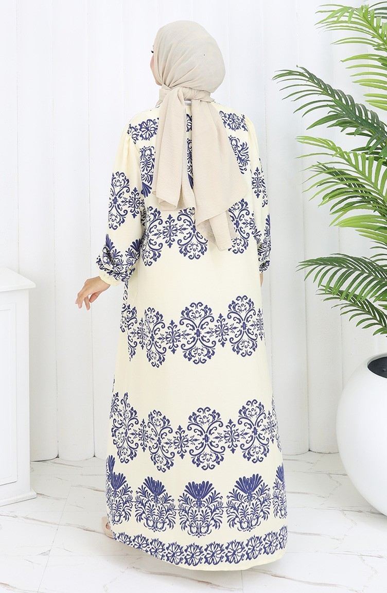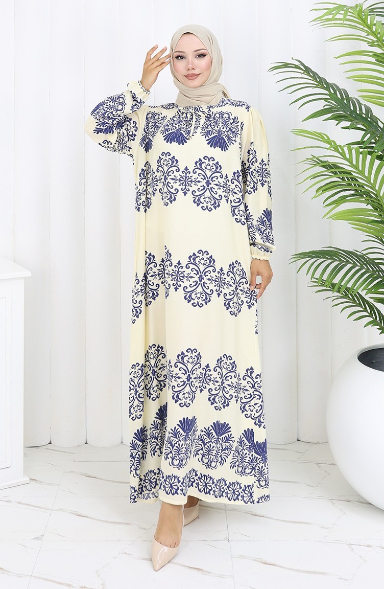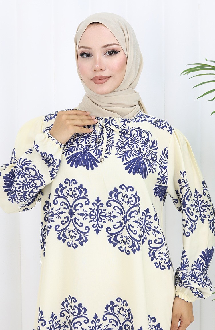 İndigo renktedir. Viskon kumaş. Desenli kumaş. Uzun kolludur. Yazlık. Kadın. Büyük beden seçeneği mevcuttur.