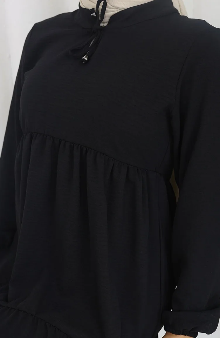 Siyah renktedir. Aerobin. Sade. İpli kullanıma sahiptir. Uzun kolludur. Sivri yaka detayı ile kullanışlı modeldir. Yazlık. Kadın. Büyük beden seçeneği mevcuttur.