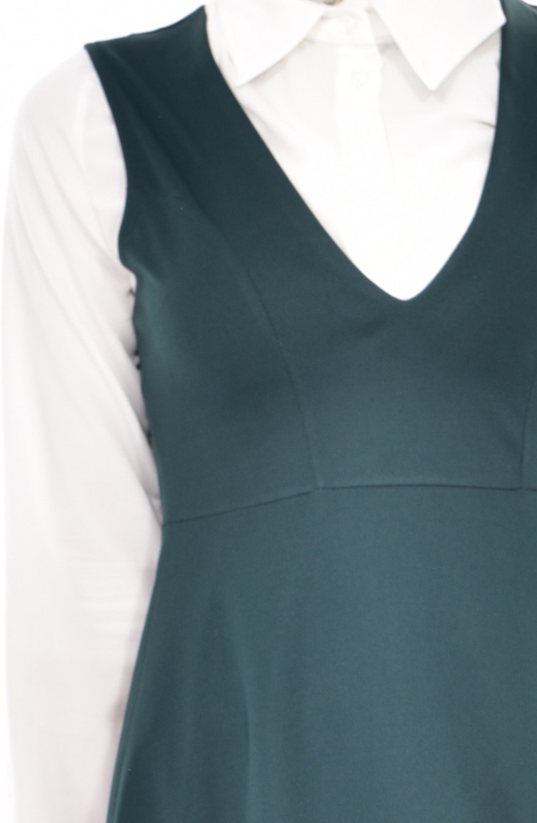 Zümrüt Yeşili renktedir. Polyester kumaş. Sade. Astarsız. Kolsuz. V yaka detayı ile içinize gömlek veya badi kullanabilirsiniz. 4 Mevsim tercih edebilirsiniz. Büyük beden seçeneği mevcuttur.