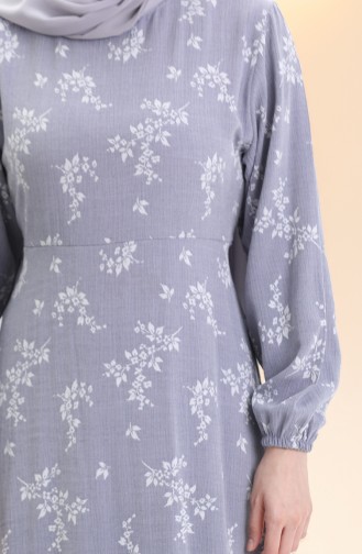Kolu Lastikli Desenli Elbise 2047-03 Açık Gri