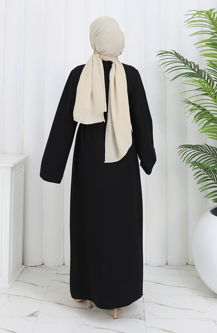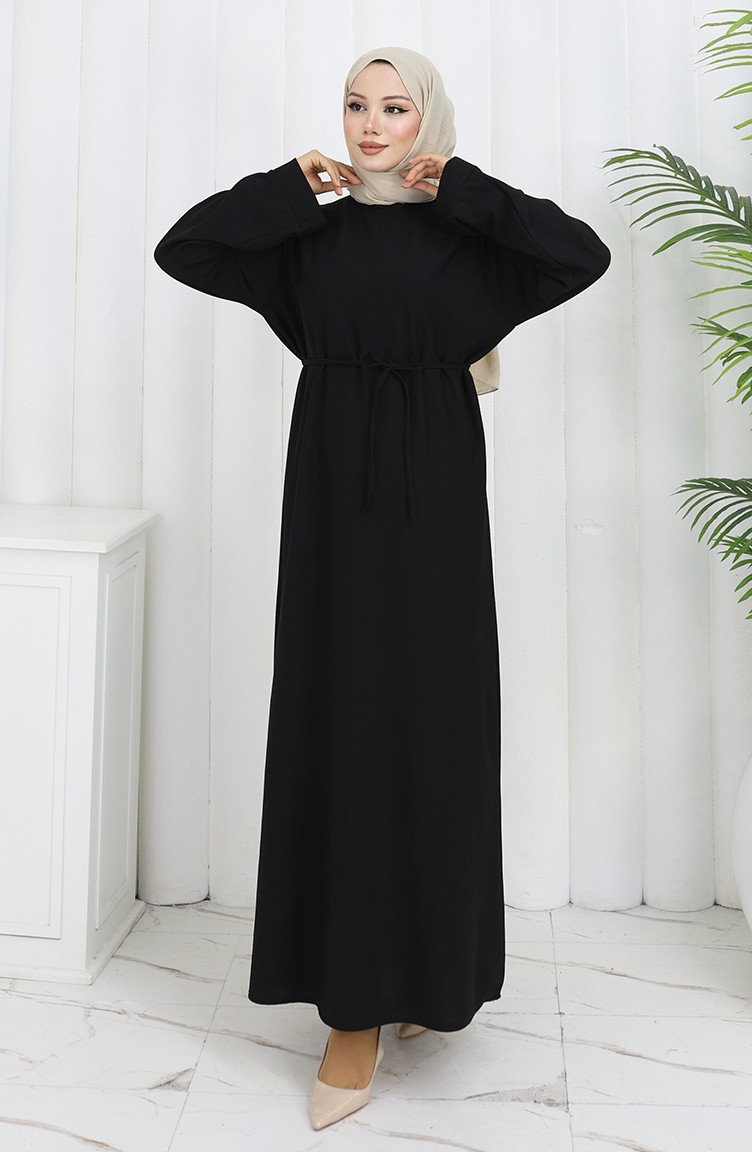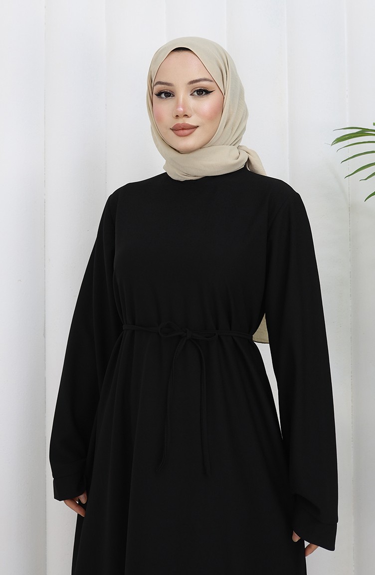 Kolu Manşetli Bağcıklı Elbise 2160-03 Siyah