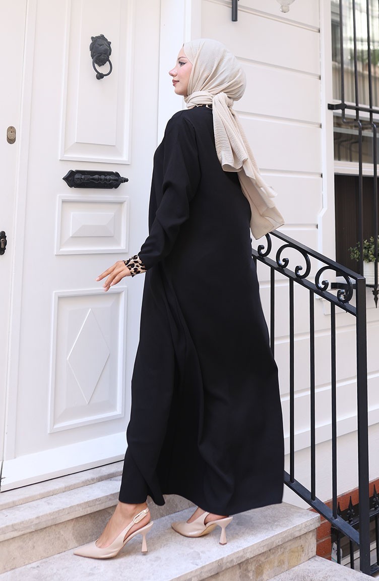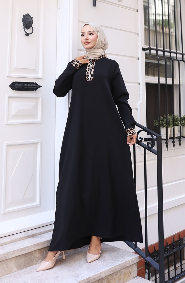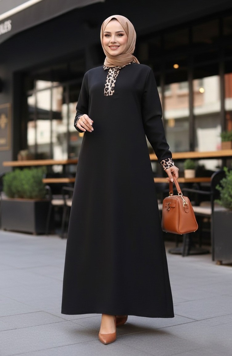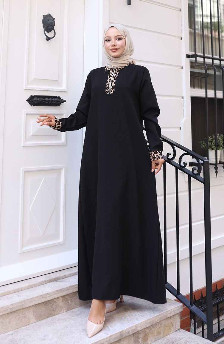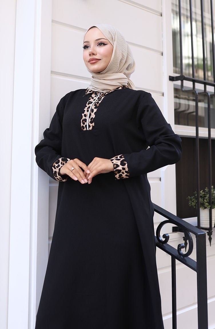 Siyah renktedir. Pamuk dokuma kumaş. Leopar desenli. Fermuarlı. Gömlek yaka detayı ile kullanışlı modeldir. 4 Mevsim tercih edebilirsiniz. Büyük beden seçeneği mevcuttur.