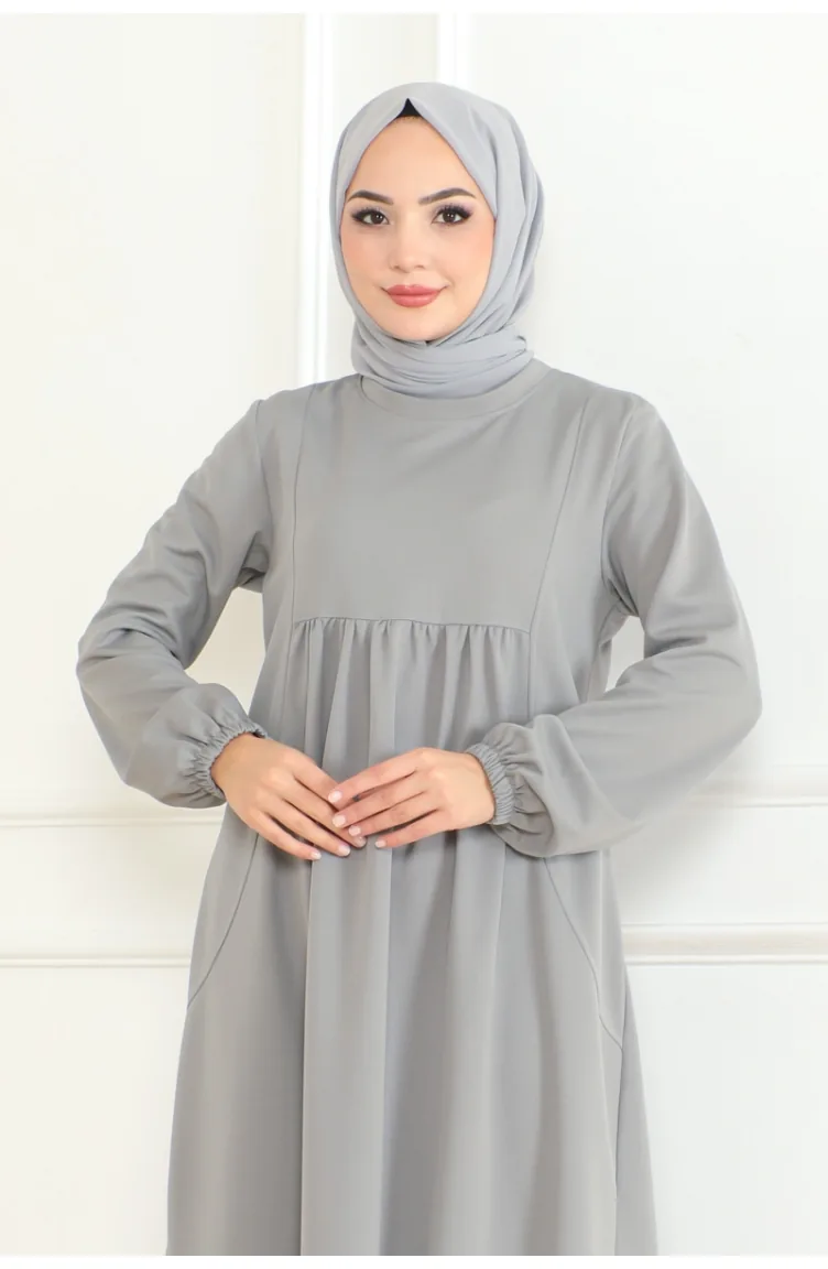 Manolya Robali Örme Double Elbise 208-02 Gri