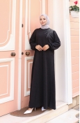 Örme Kumaş Kışlık Taş İşlemeli Tesettür Elbise 2181-04 Siyah