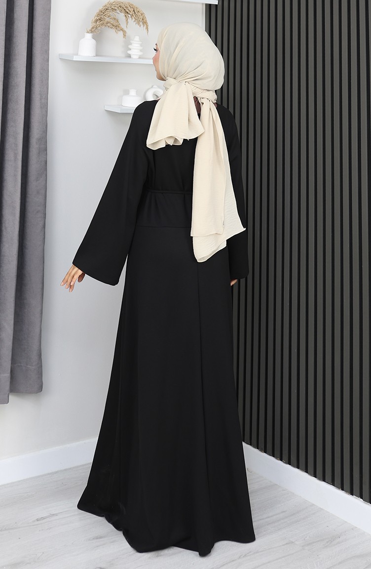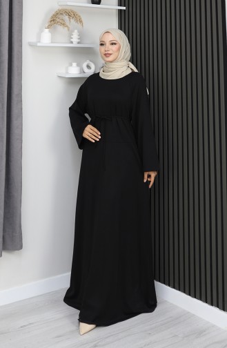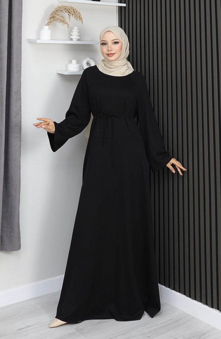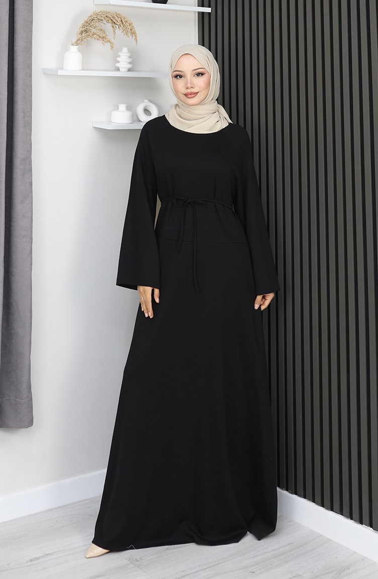 Oysho Kumaş Kuşaklı Tesettür Elbise 2162-03 Siyah
