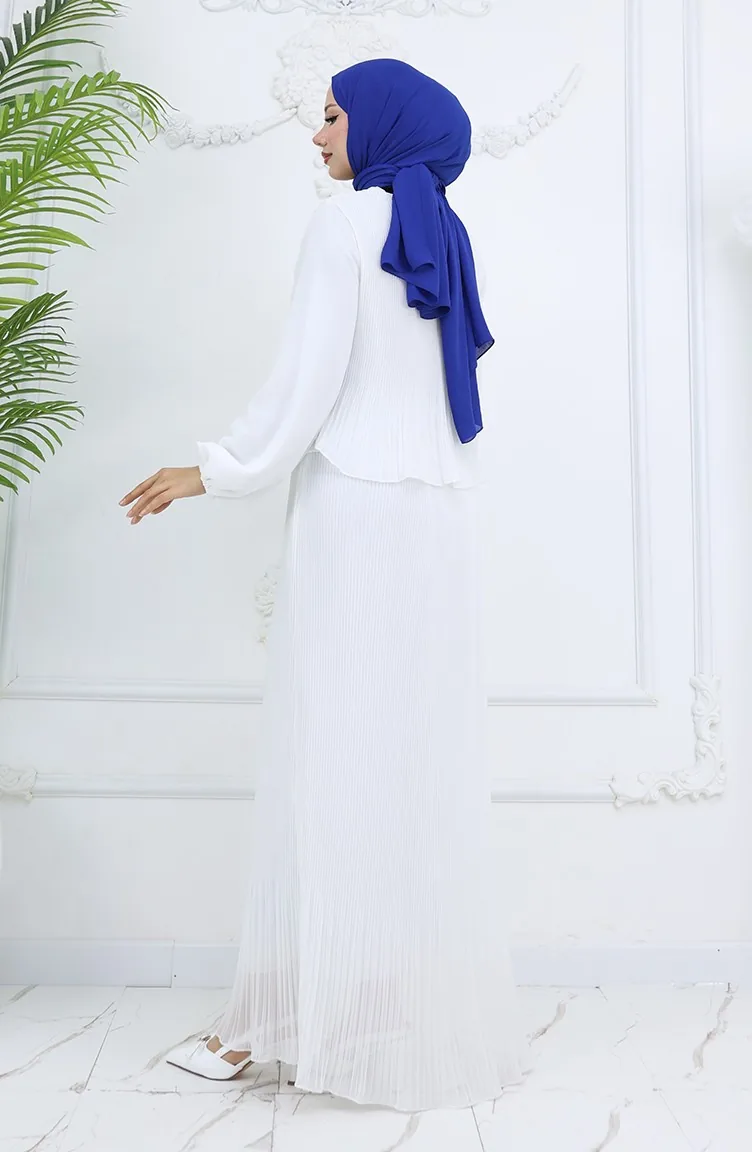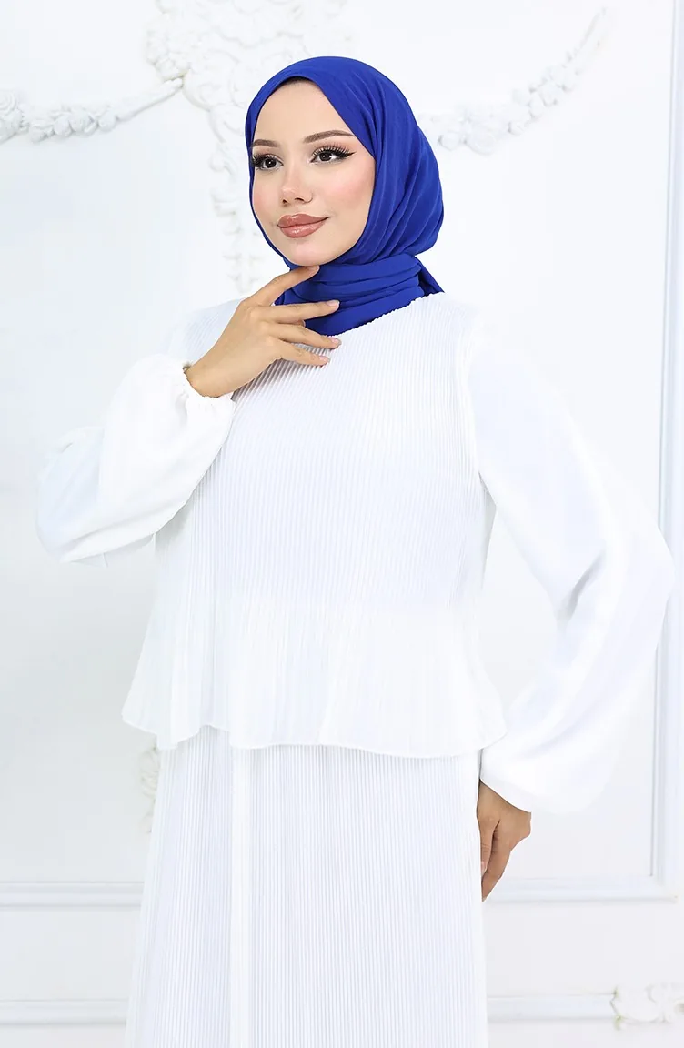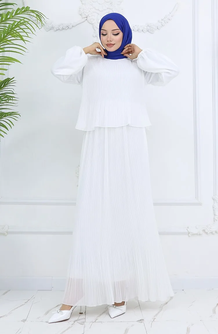 Piliseli Multi Şifon Elbise 2044-02 Ekru