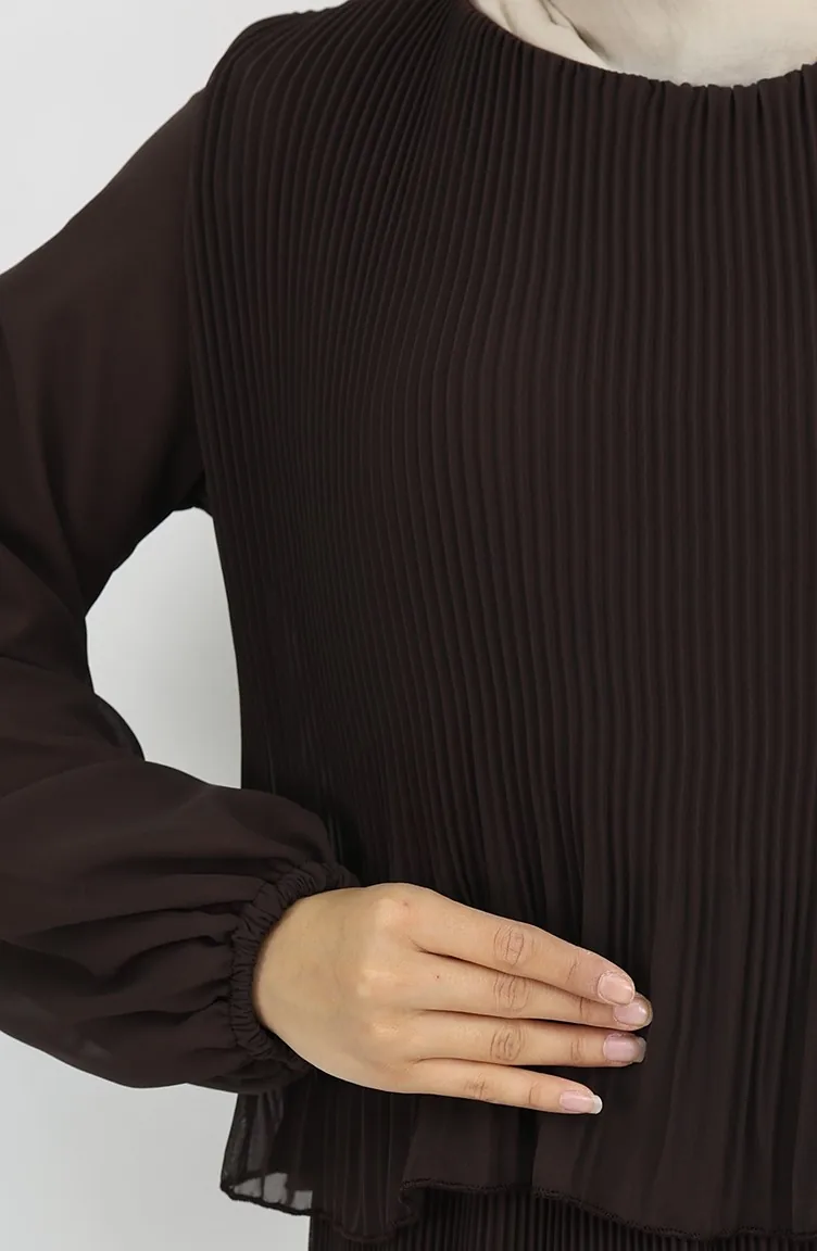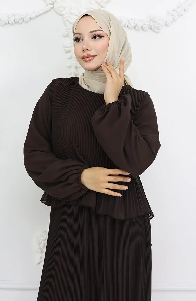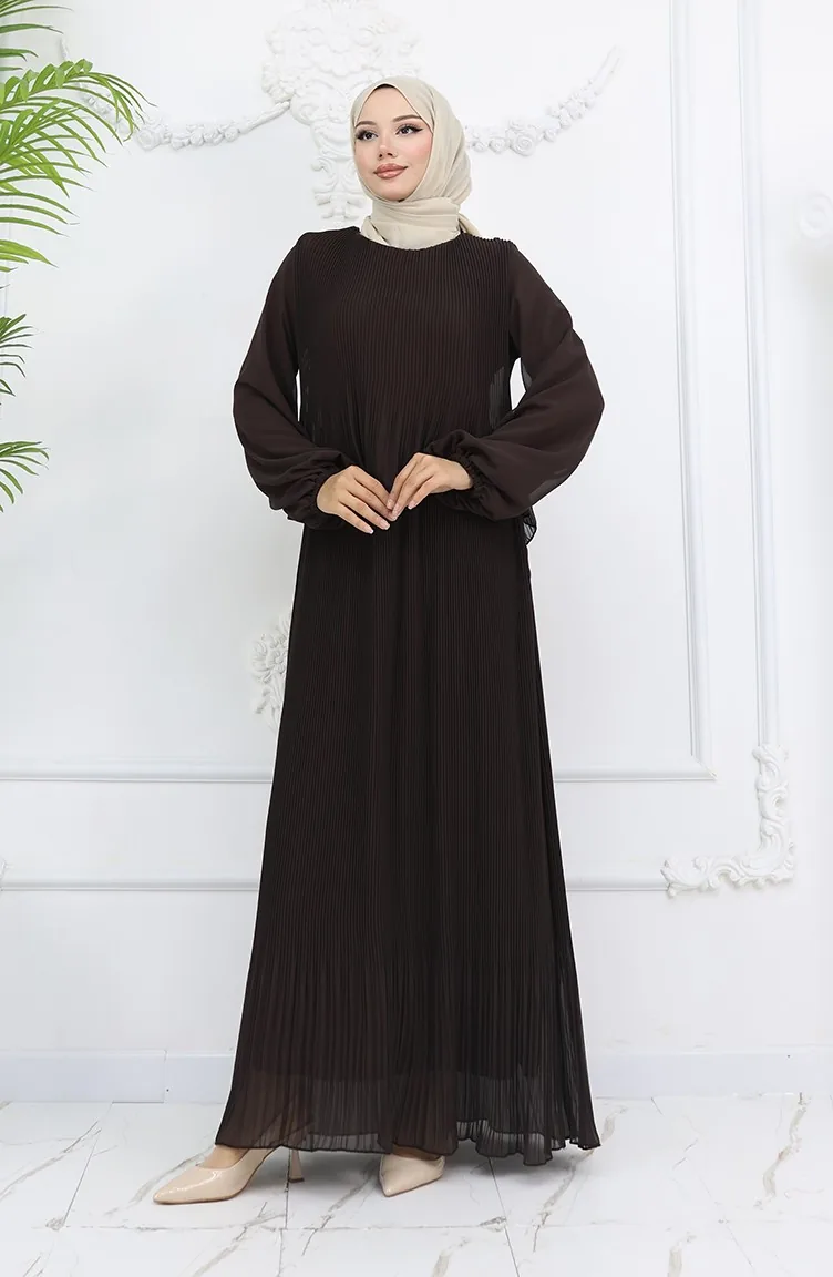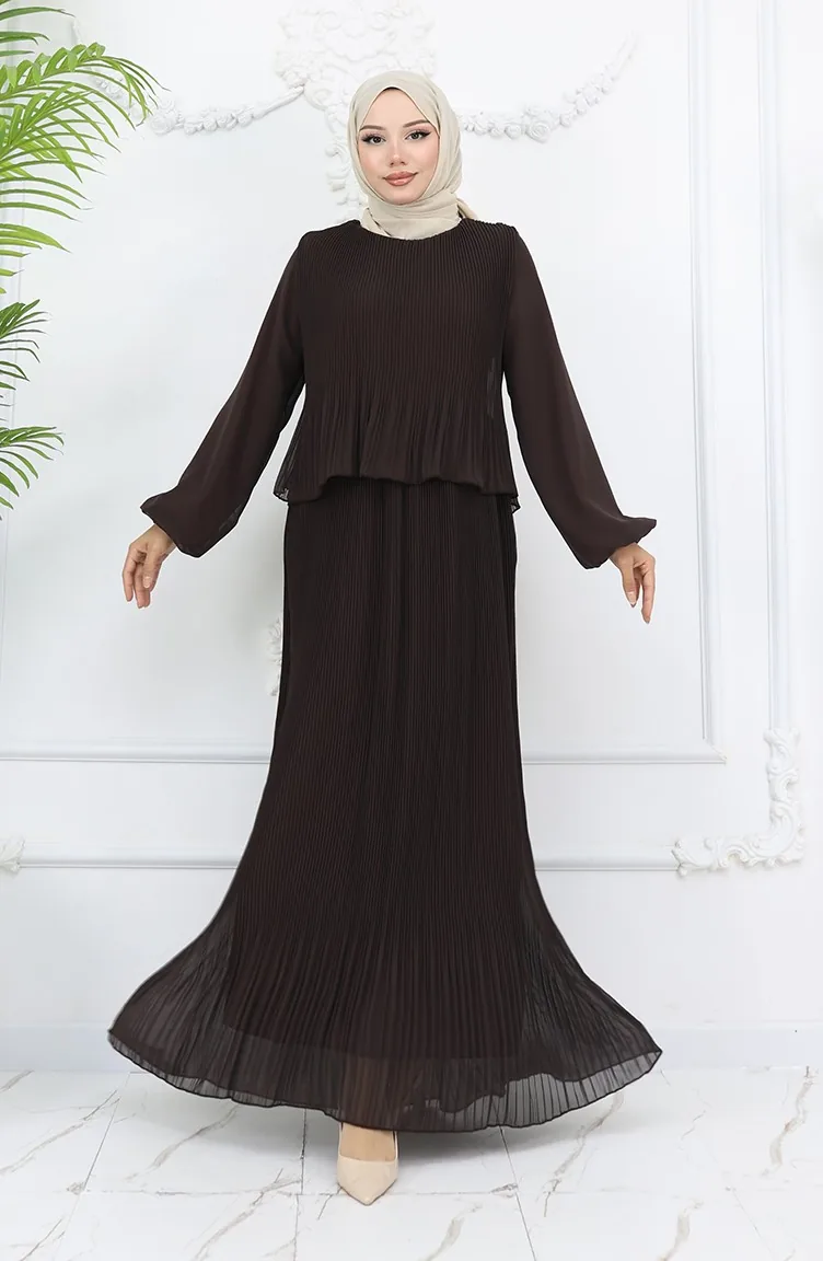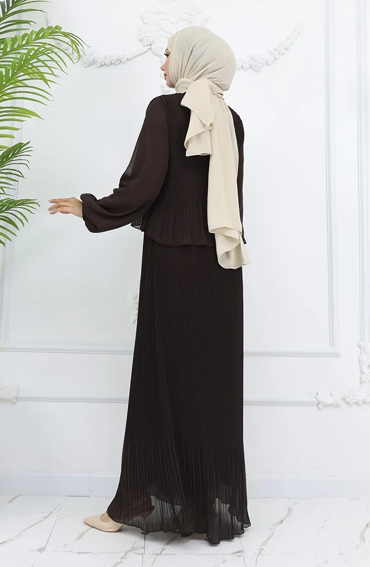 Piliseli Multi Şifon Elbise 2044-08 Kahverengi