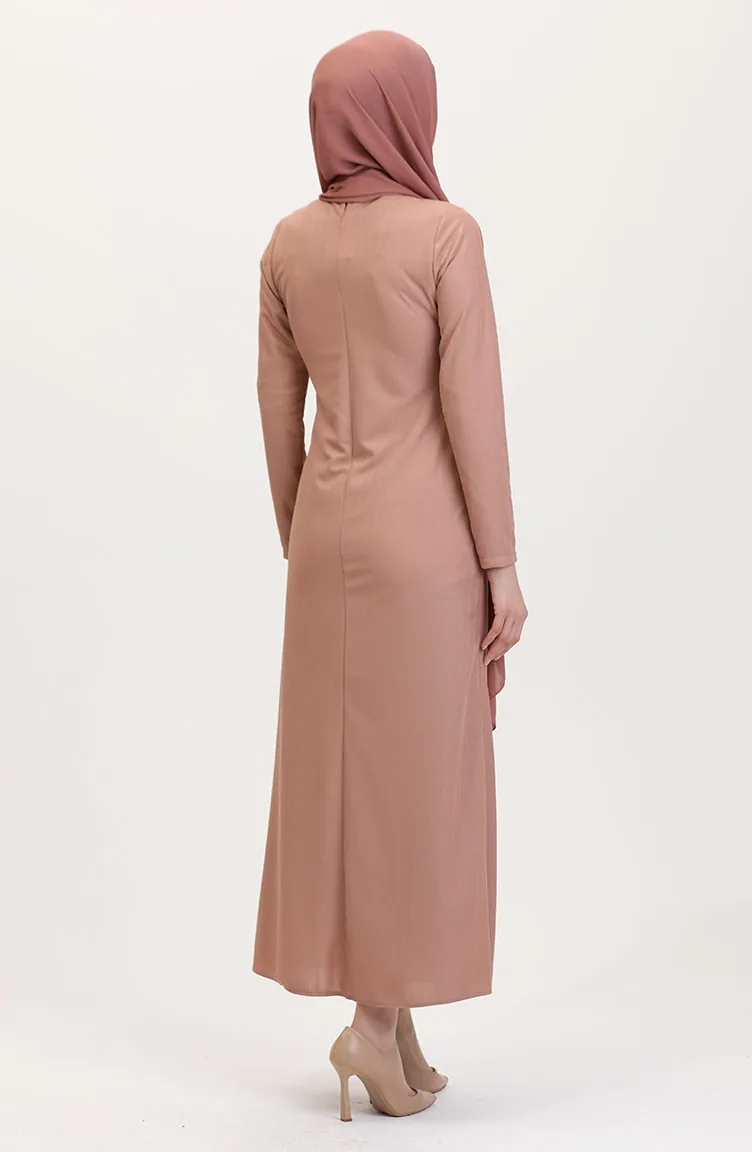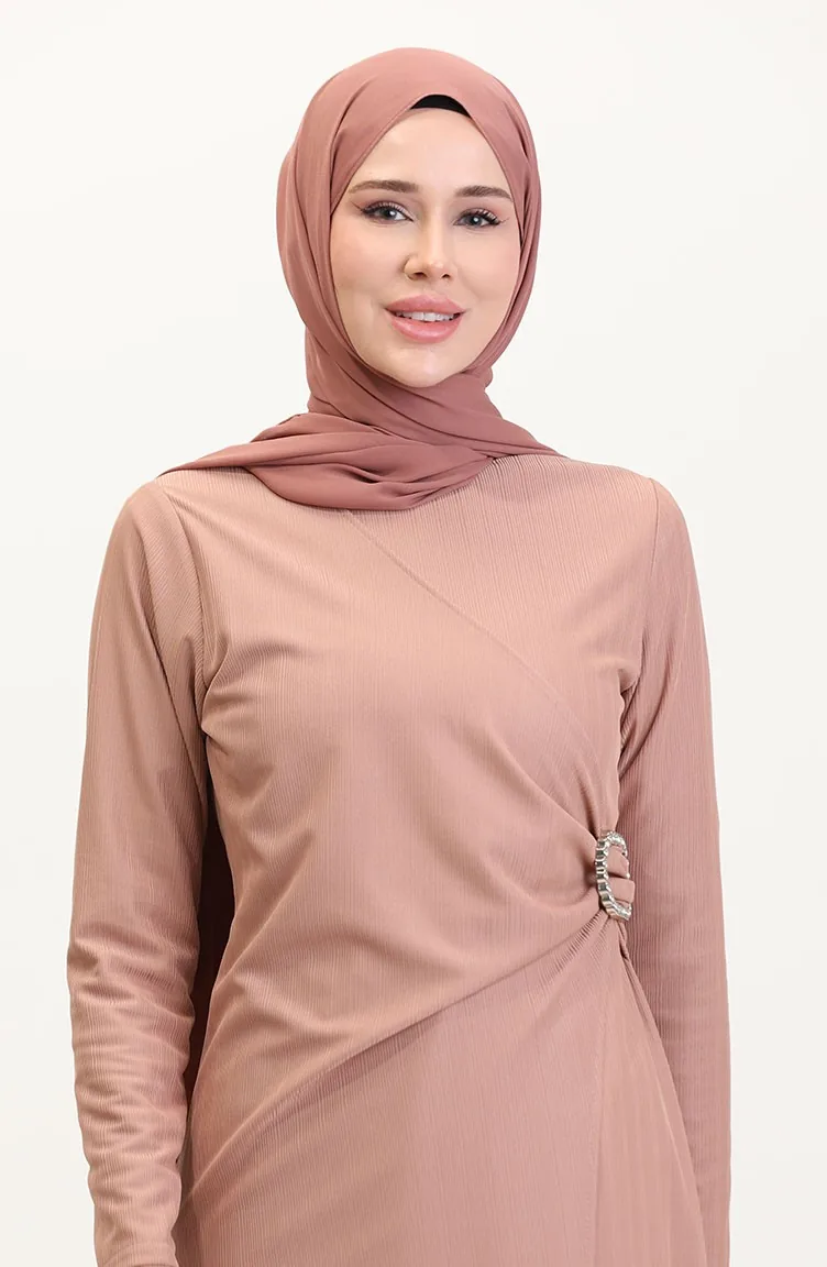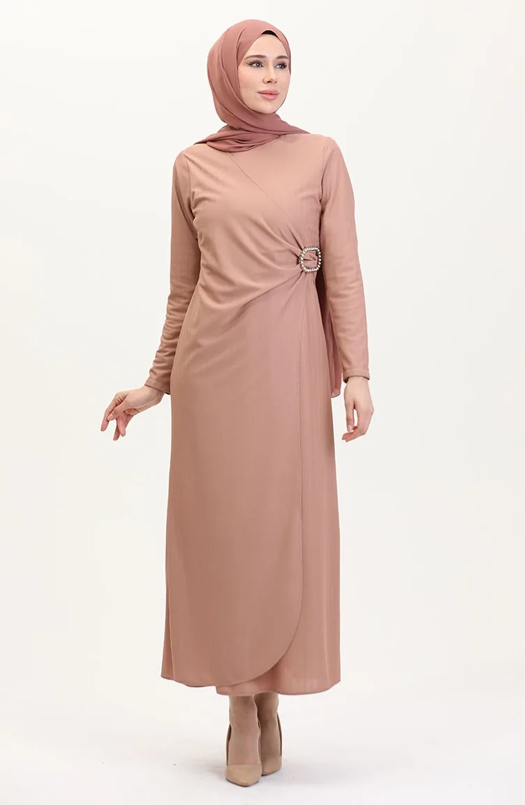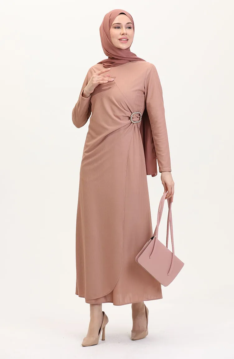 Taş Detaylı Takım Görünümlü Elbise 4740-01 Pudra