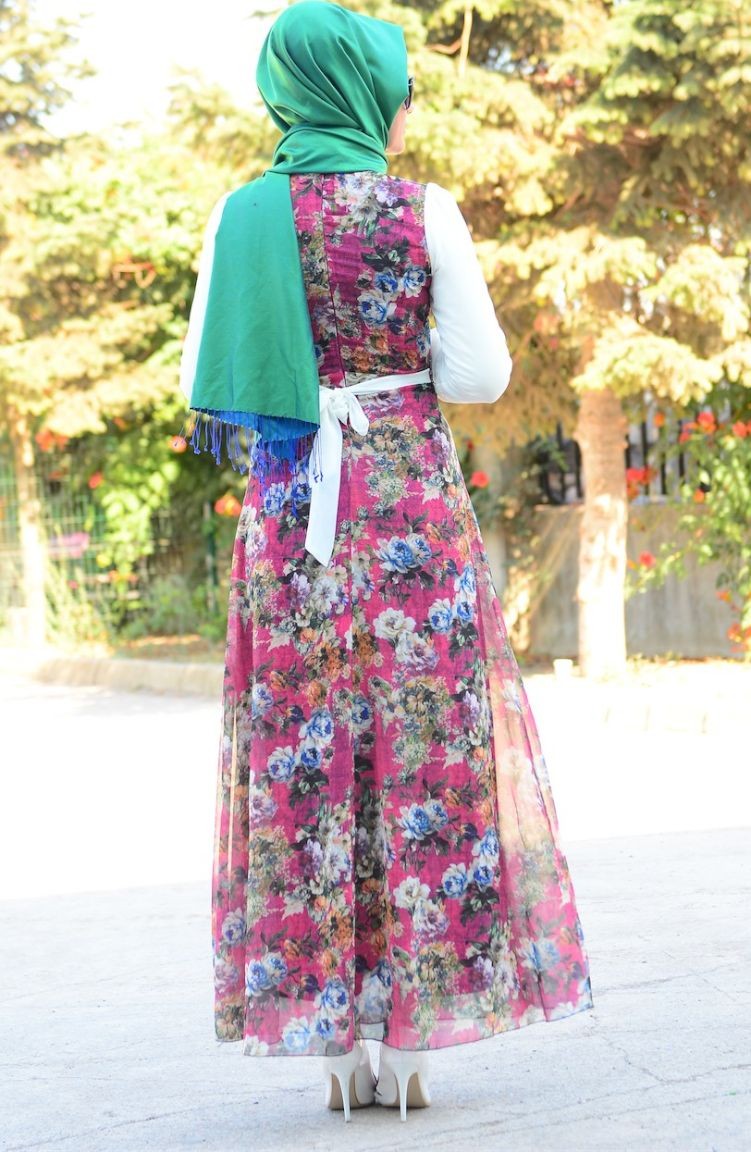 Tesettür Elbise FY 52283-08 Fuşya