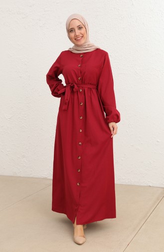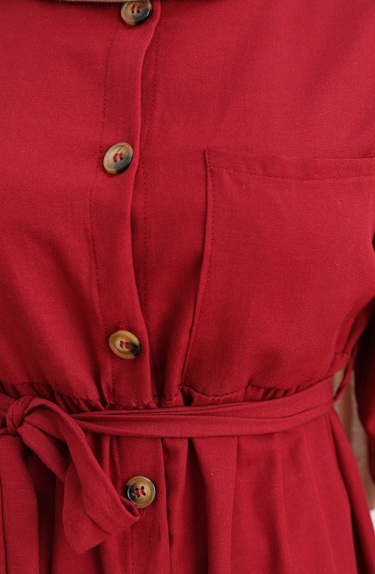 Tofisa Düğmeli Kuşaklı Elbise 3558-01 Bordo