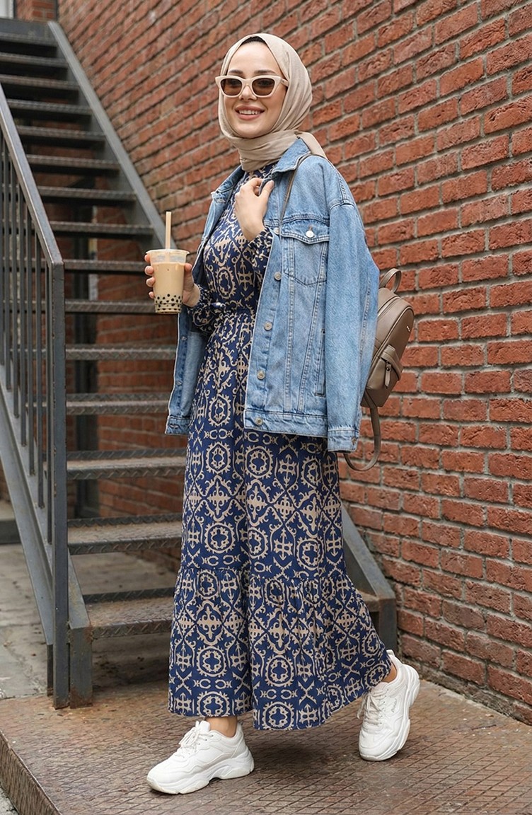 Lacivert renktedir. Pamuk dokuma kumaş. Desenli kumaş. Astarsız. Uzun kolludur. Sıfır yaka detayı ile rahat kullanıma sahiptir. Mevsimlik. Kadın. Büyük beden seçeneği mevcuttur.
