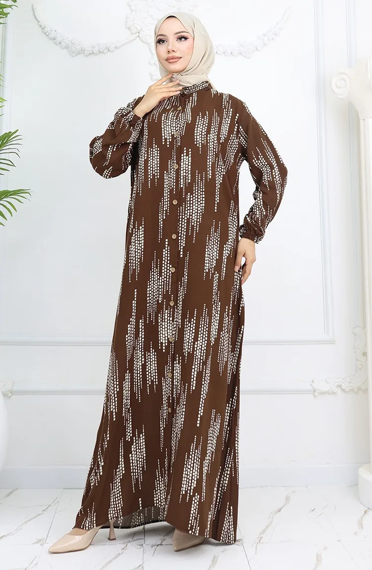 Viskon Kumaş Boydan Düğmeli Elbise 0049-02 Kahverengi