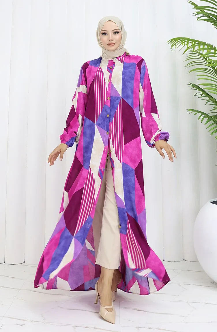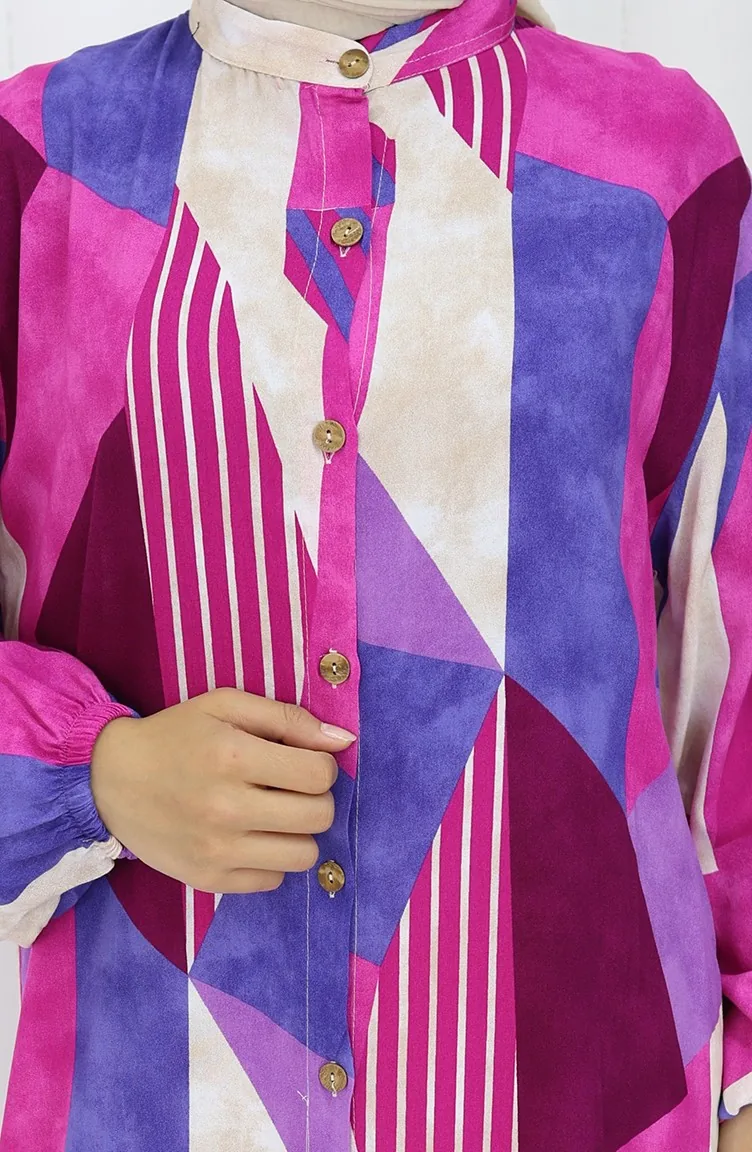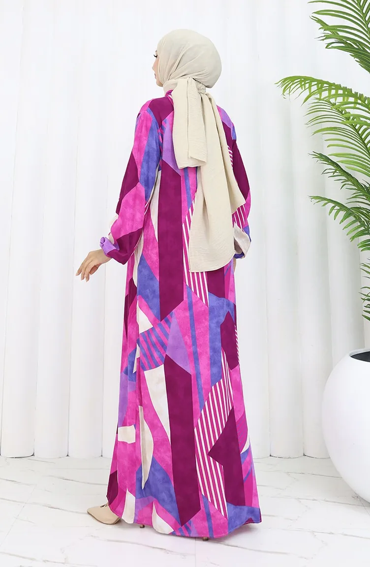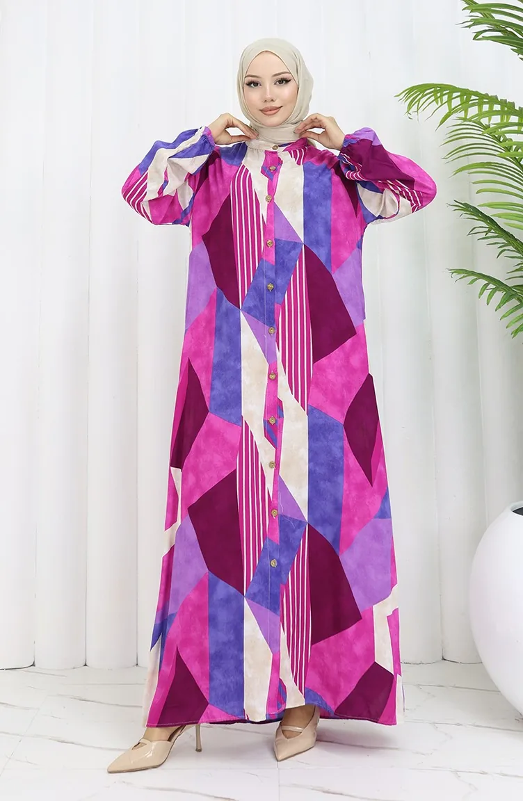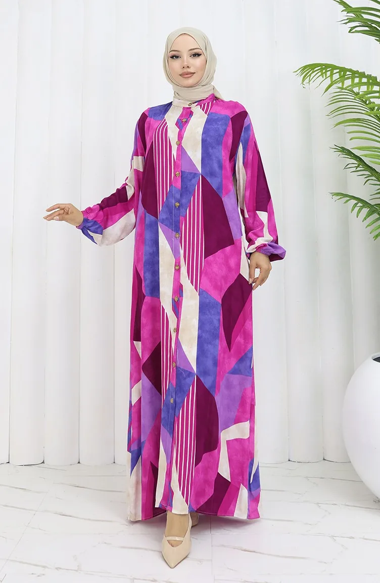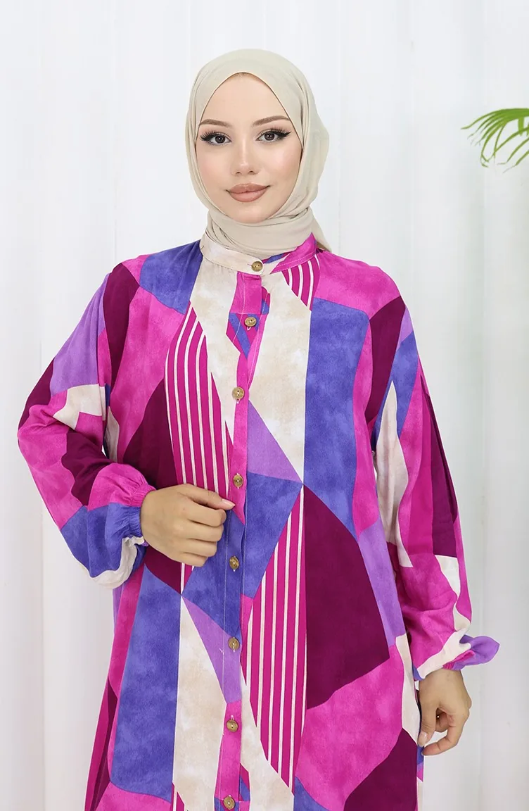 Viskon Kumaş Boydan Düğmeli Elbise 0051-03 Fuşya Mor