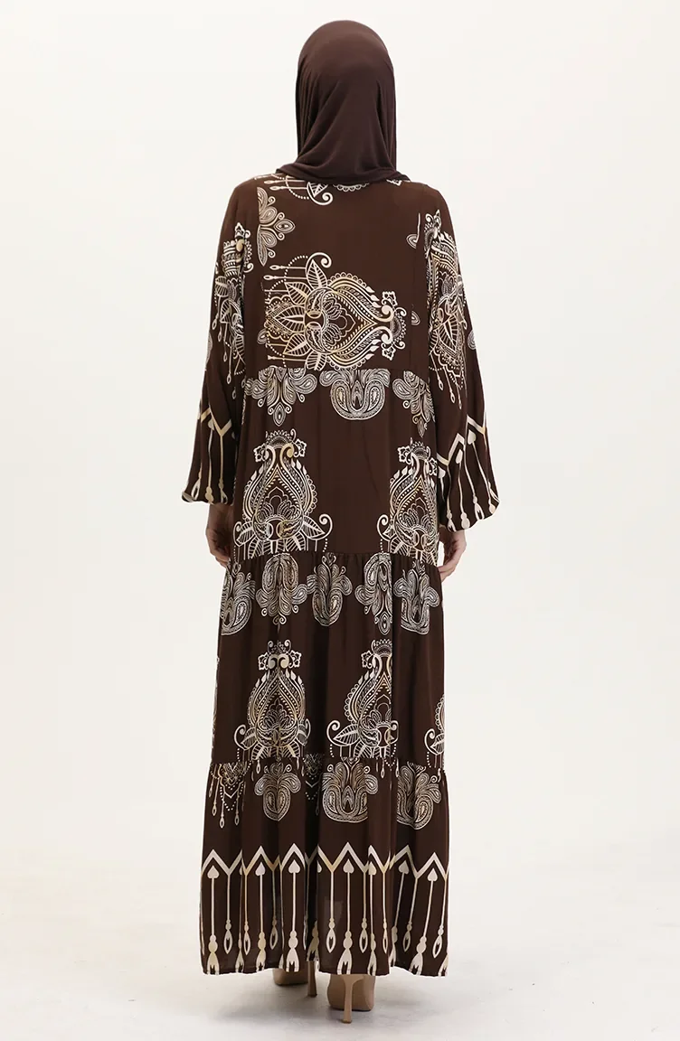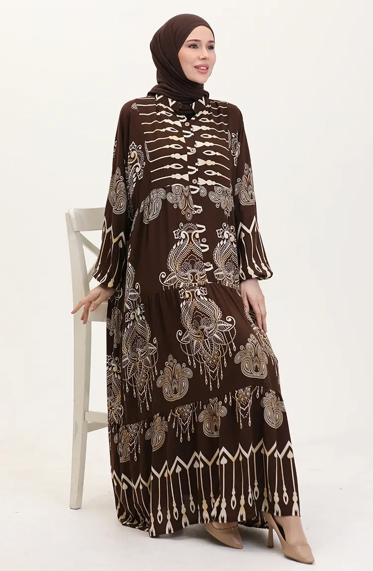 Viskon kumaş Desenli Düğmeli Elbise 2014-05 Kahverengi