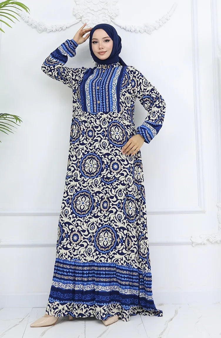 Lacivert renktedir. Viskon kumaş. Desenli kumaş. Düğmeli. Lastik kollu. Hakim yaka detayı ile kullanışlı modeldir. 4 Mevsim tercih edebilirsiniz. Büyük beden seçeneği mevcuttur.