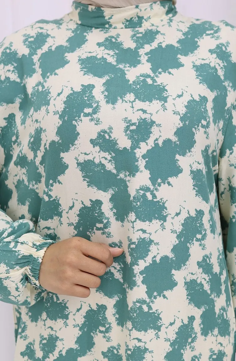 Çağla Yeşili renktedir. Viskon kumaş. Desenli kumaş. Astarsız. Lastik kollu. Sıfır yaka detayı ile rahat kullanıma sahiptir. 4 Mevsim tercih edebilirsiniz. Rahat. Büyük beden seçeneği mevcuttur.