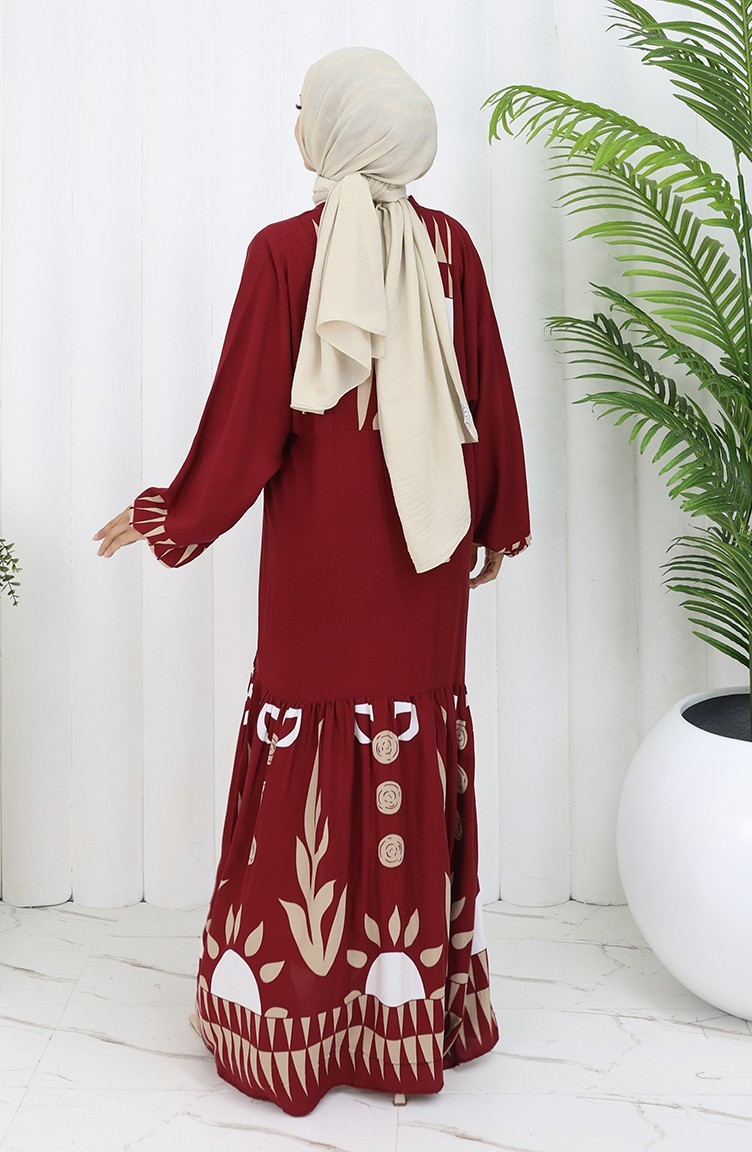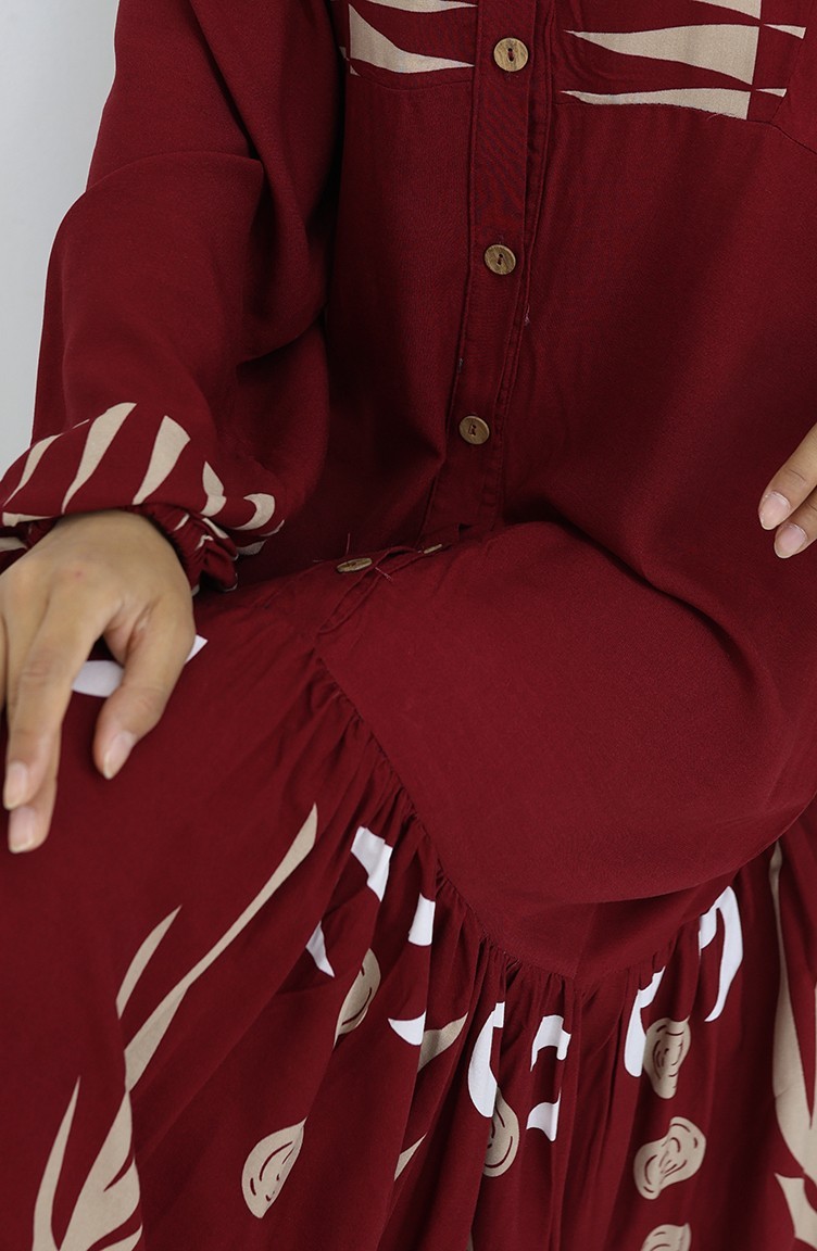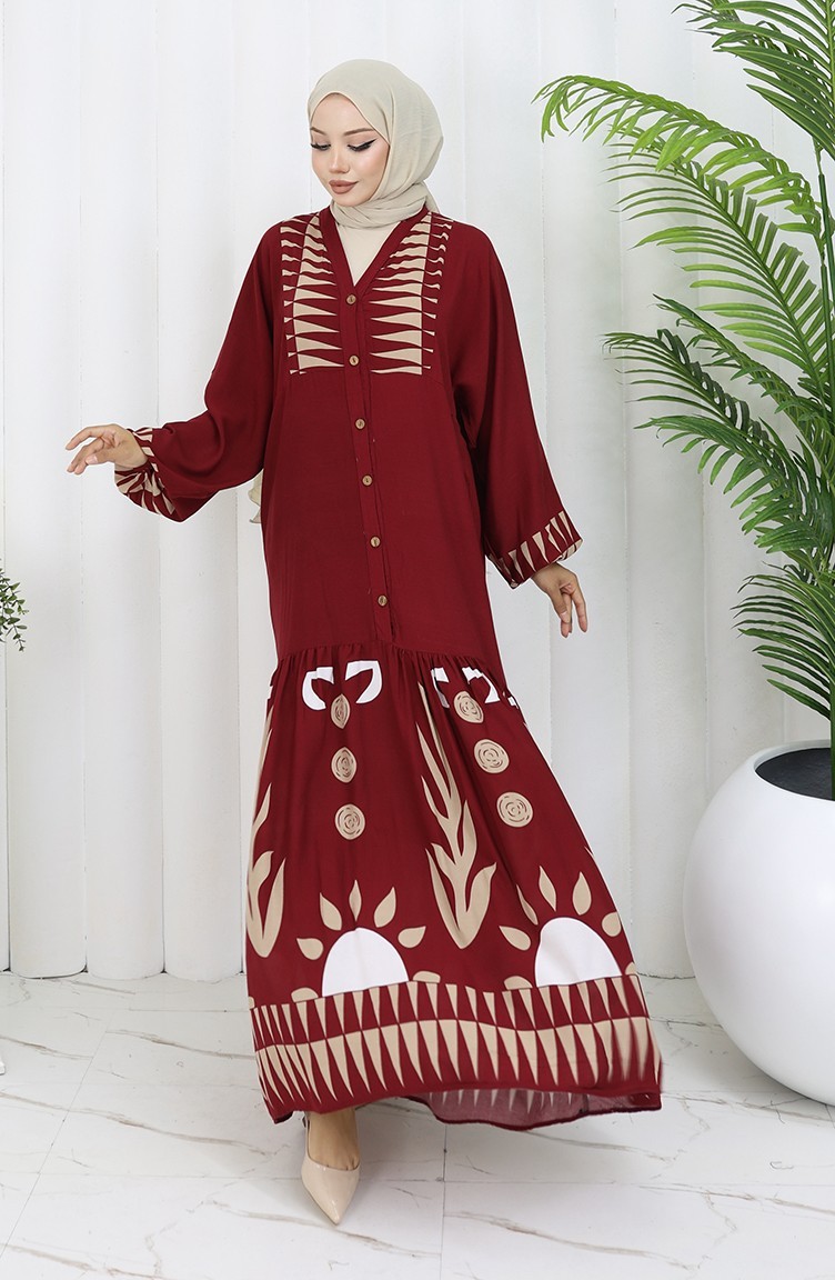 Viskon Kumaş Yarım Düğmeli Elbise 0075-04 Bordo