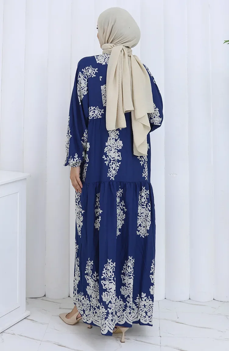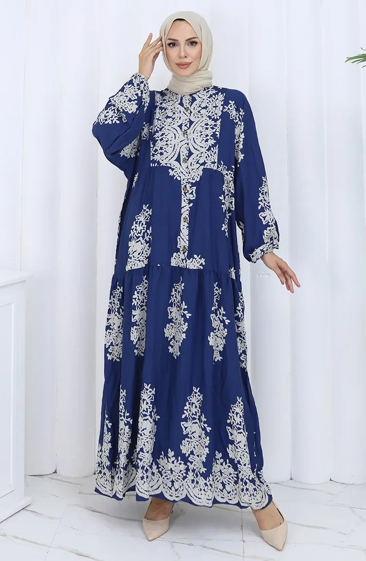 Viskon Kumaş Yarım Düğmeli Elbise 2117-01 Lacivert