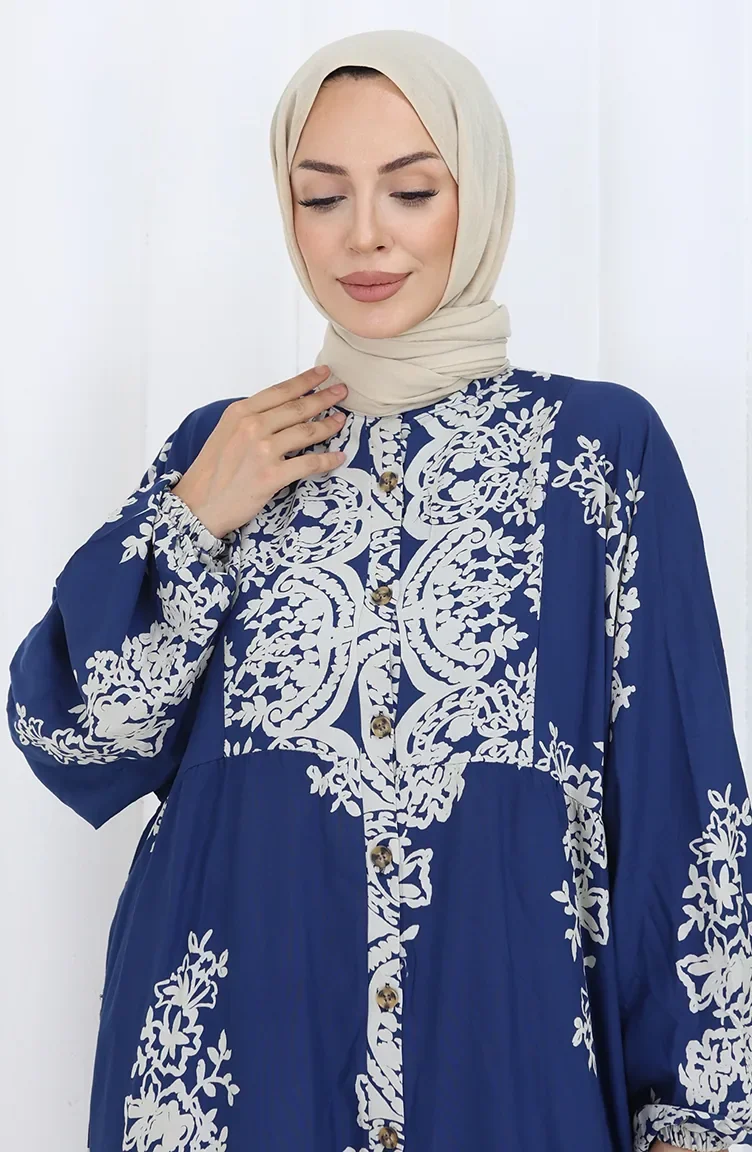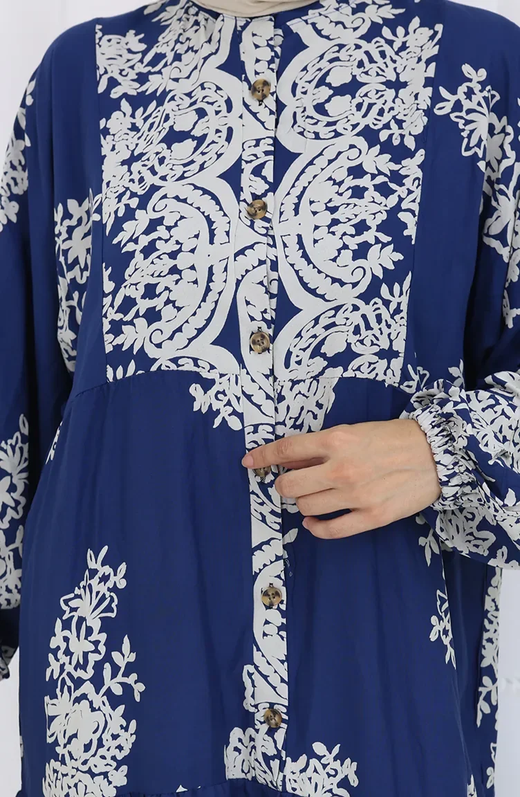 Lacivert renktedir. Viskon kumaş. Desenli kumaş. Düğmeli. Lastik kollu. Hakim yaka detayı ile kullanışlı modeldir. 4 Mevsim tercih edebilirsiniz. Büyük beden seçeneği mevcuttur.