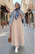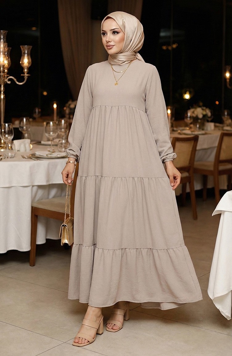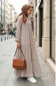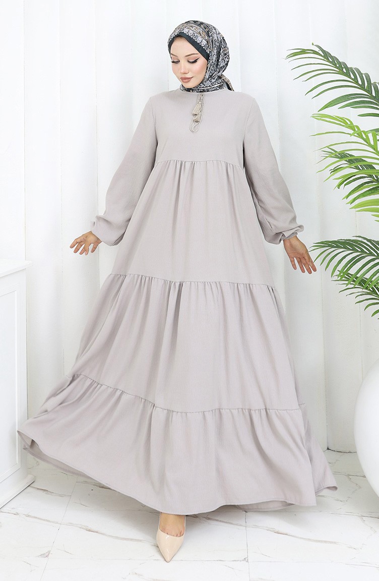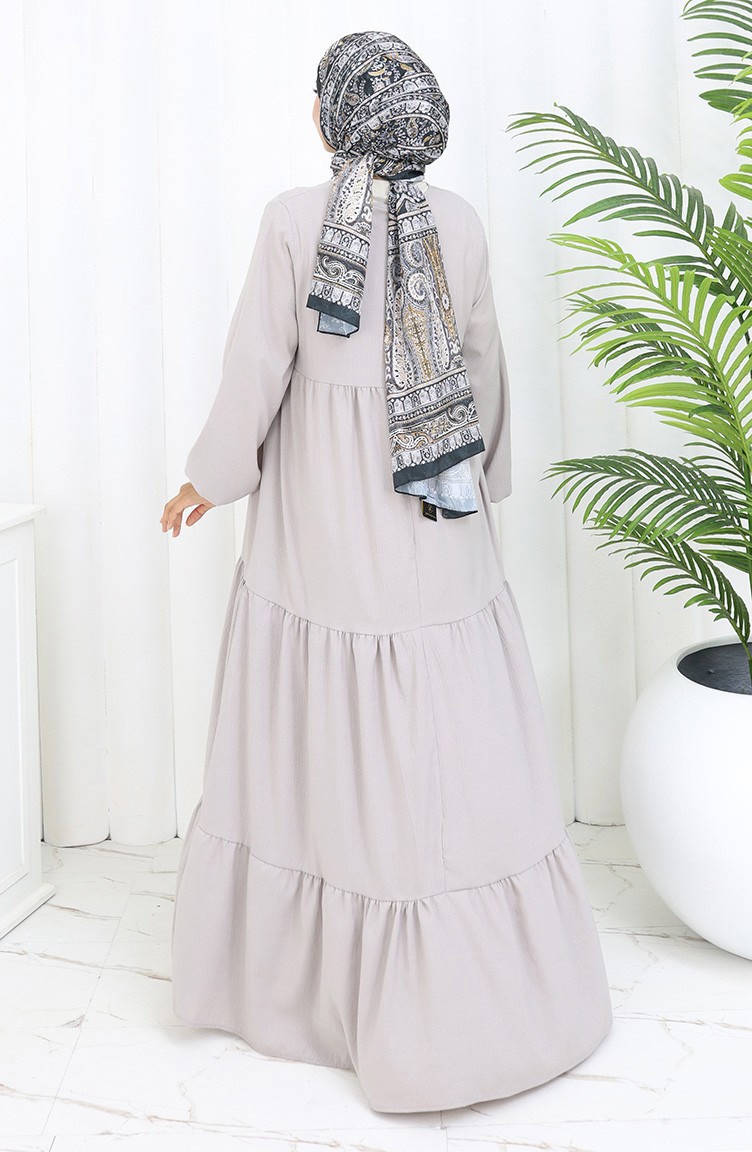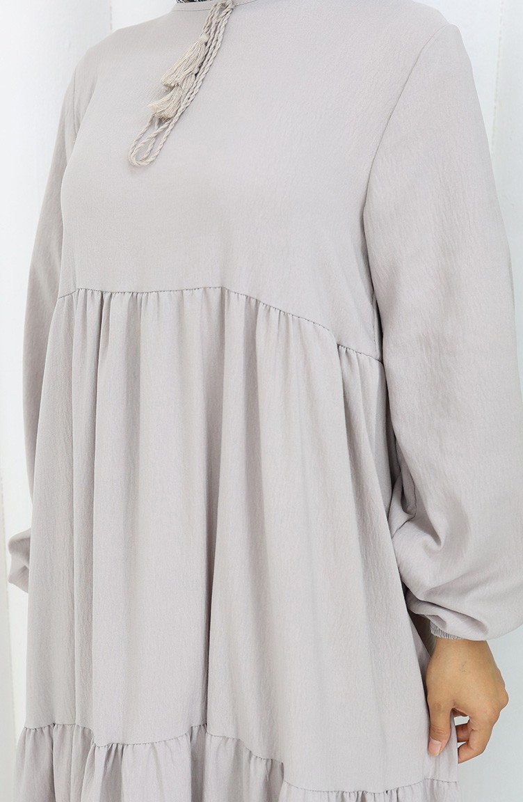 Yaka Bağcıklı Kat Kat Elbise 4107-04 Gri