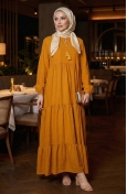 Sefamerve’nin zarafeti konforla buluşturan koleksiyonunda yer alan Yaka Bağcıklı Kat Kat Aerobin Elbise, dört mevsim şıklığını gardırobunuza taşıyor. Kiremit renginin sıcak tonlarıyla tasarlanan bu model, muhafazakar giyim tarzını benimseyen kadınlar için hem günlük kullanımda hem de özel davetlerde ideal bir seçenek sunuyor.Kumaş Özelliği: Nefes alabilen ve kırışmaya karşı dayanıklı yüksek kaliteli Aerobin kumaştan üretilmiştir.Tasarım Detayları: Yakasındaki zarif bağcık detayı ve eteğindeki kat kat (volanlı) kesimiyle dinamik ve modern bir görünüm sağlar.Kalıp: Standart kalıp olup vücut hatlarını belli etmeyen dökümlü bir yapıya sahiptir.Kombin Önerisi: Bu şık elbiseyi, bej veya ekru tonlarında bir şal ve dolgu topuklu ayakkabılarla kombinleyerek sofistike bir görünüm elde edebilirsiniz. Mevsim geçişlerinde kot ceketler veya uzun hırkalarla tamamlamak için mükemmel bir parçadır. Terletmeyen yapısı sayesinde gün boyu ferahlık sağlar.