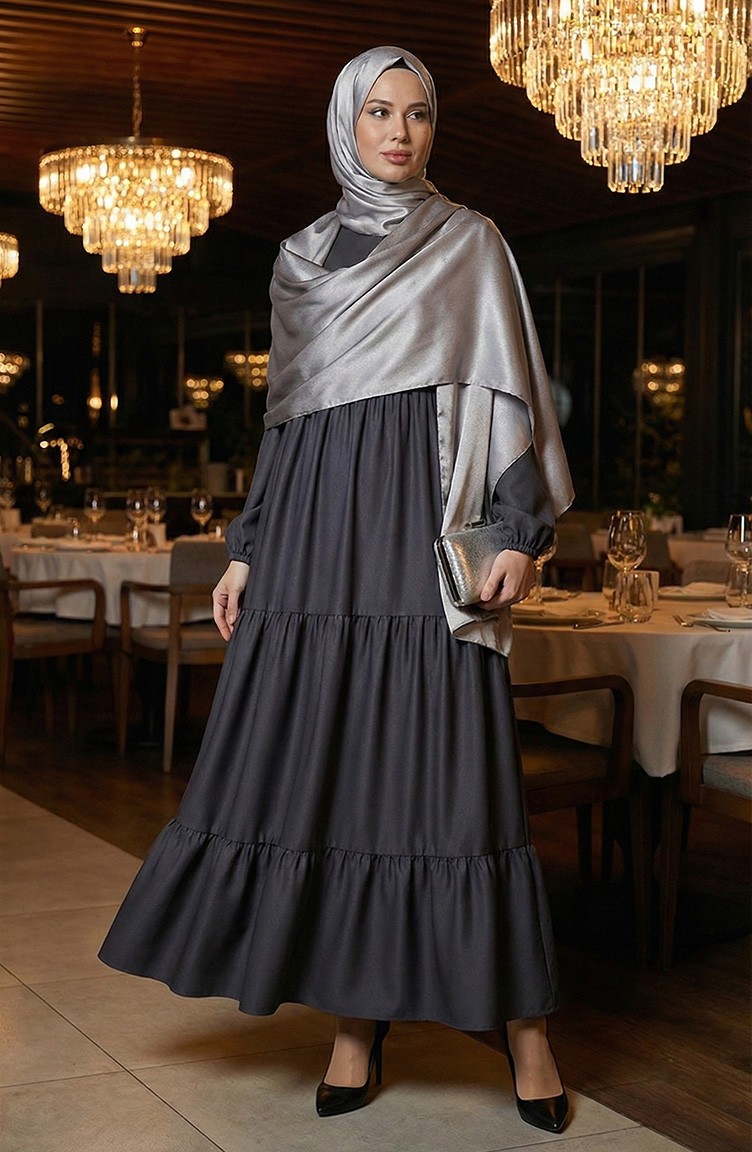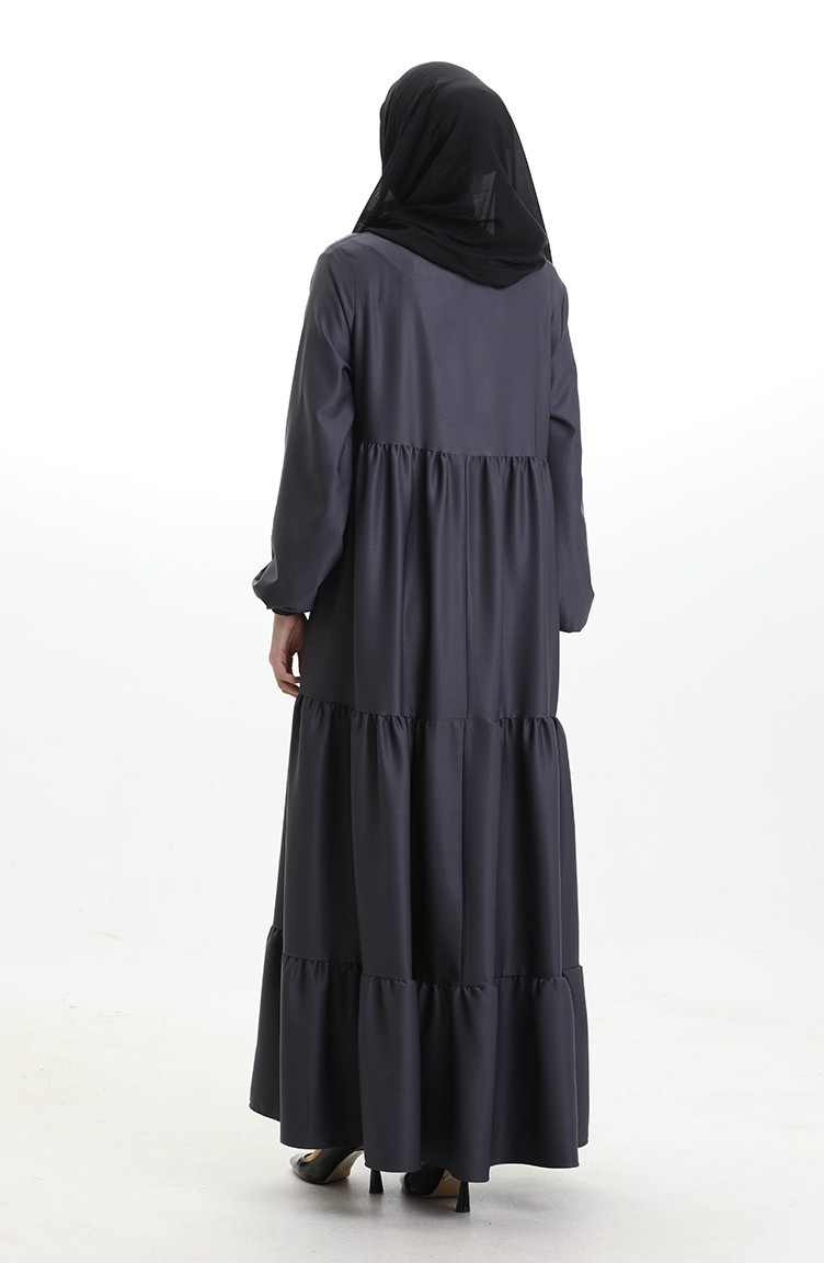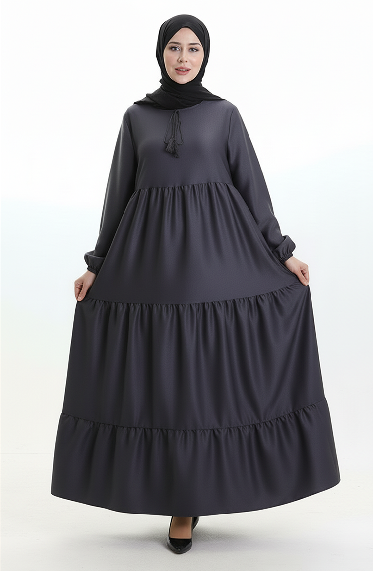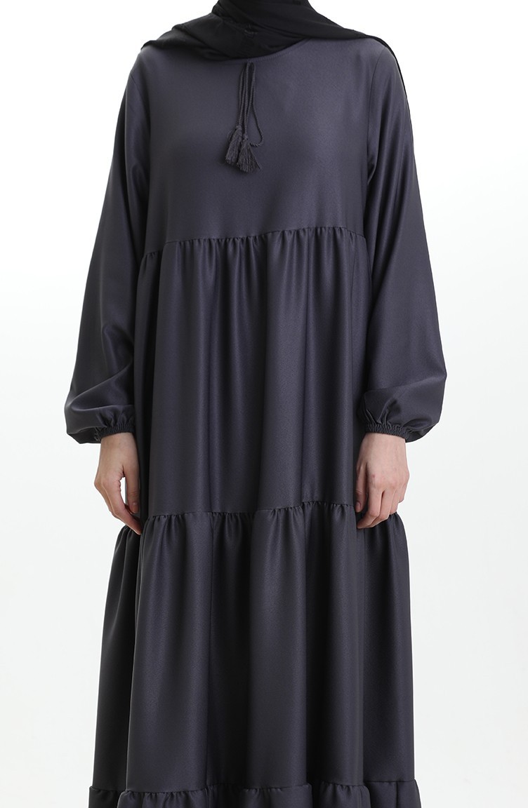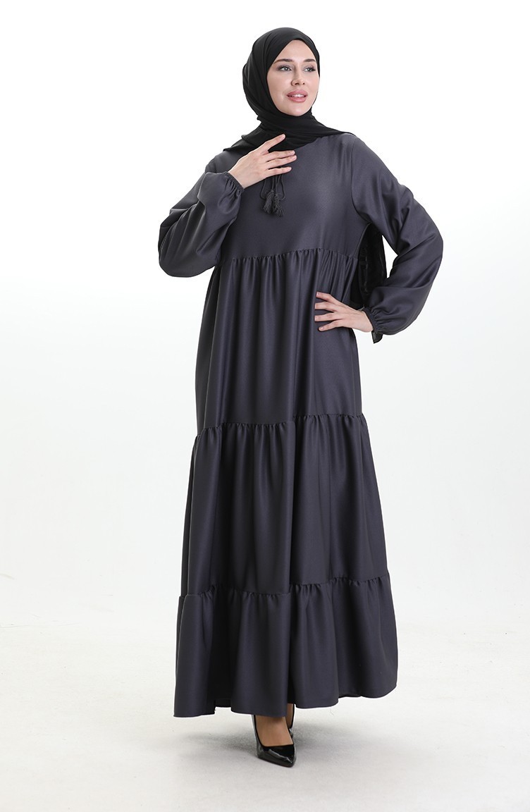 Yaka Bağcıklı Kat Kat Elbise 4107-12 Füme