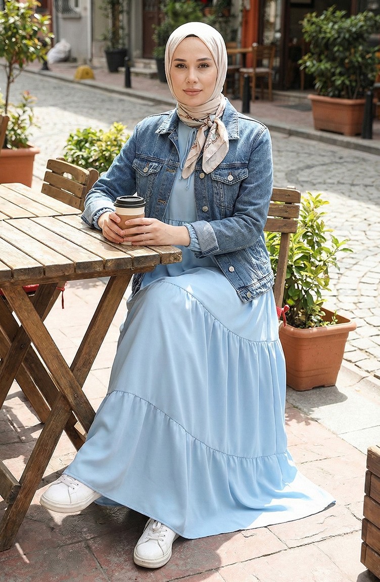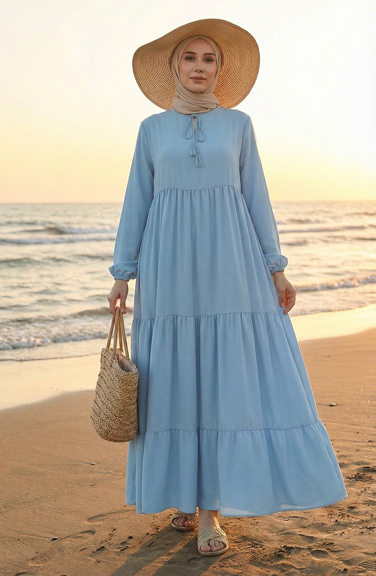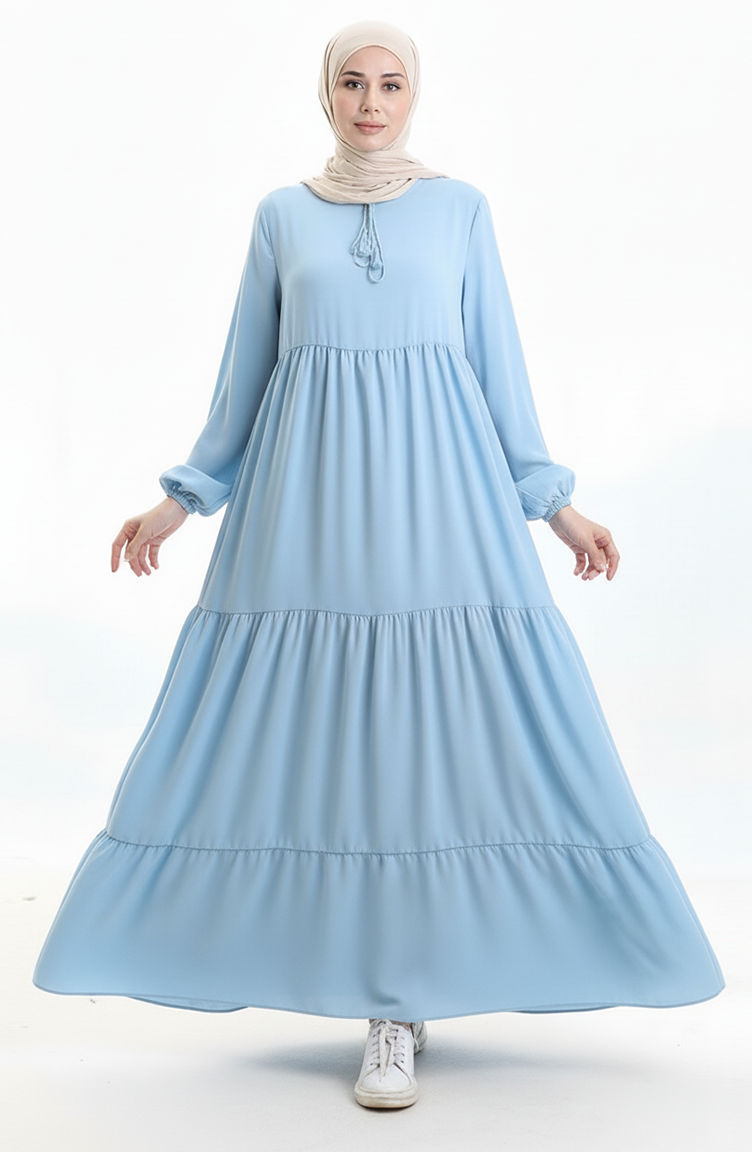 Yaka Bağcıklı Kat Kat Elbise 4107-16 Bebe Mavisi