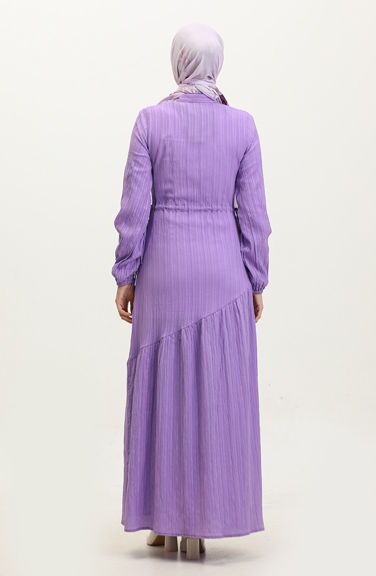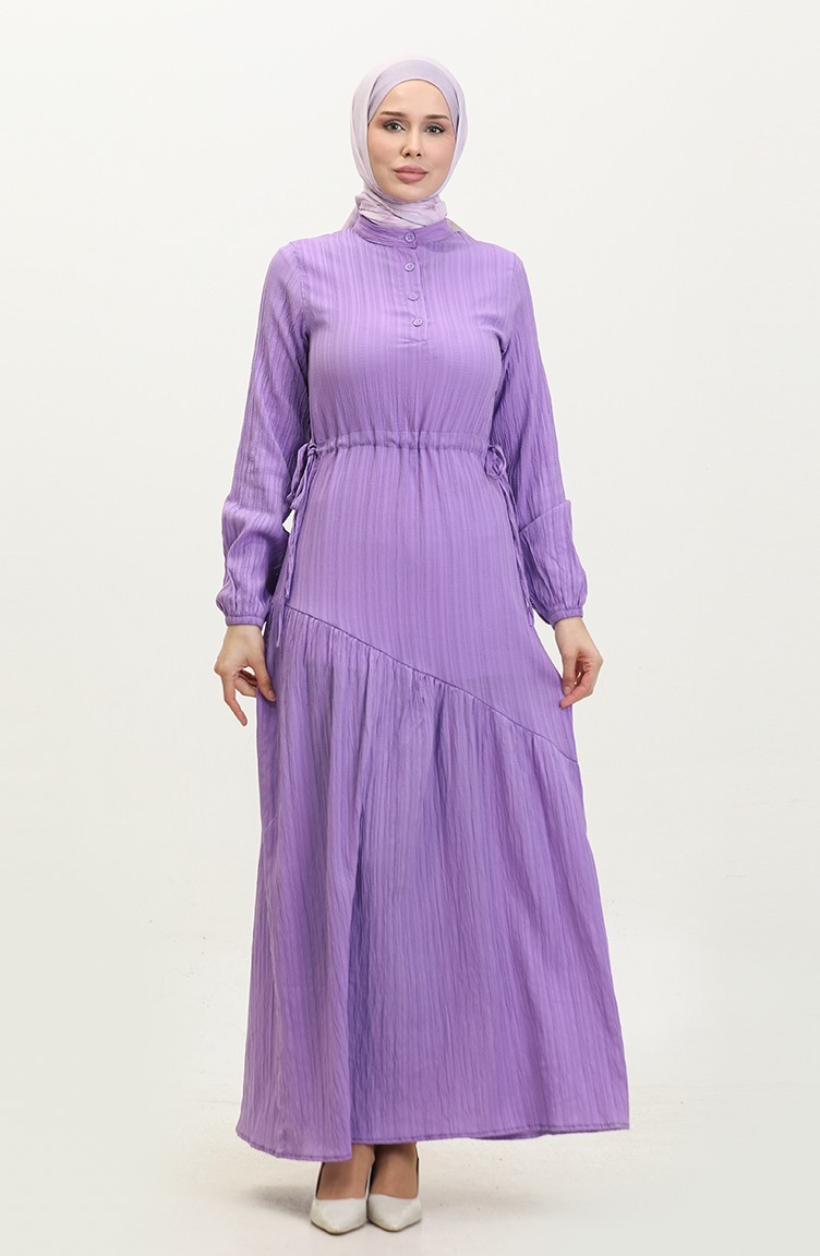 Yandan Bağlamalı Büzgülü Elbise 0363-01 Lila