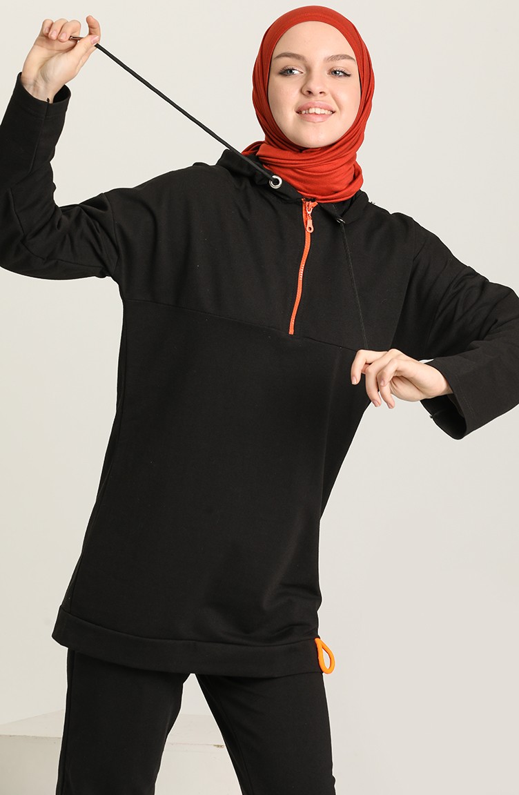 Fermuar Detayli Eşofman Takımı 2040-02 Siyah