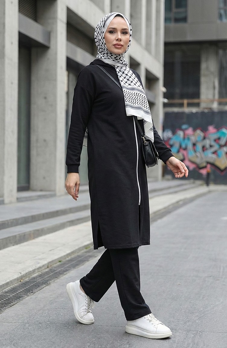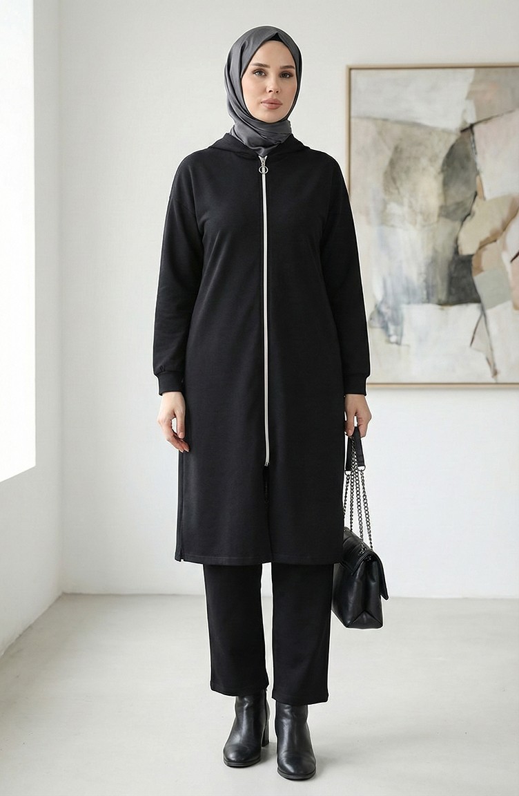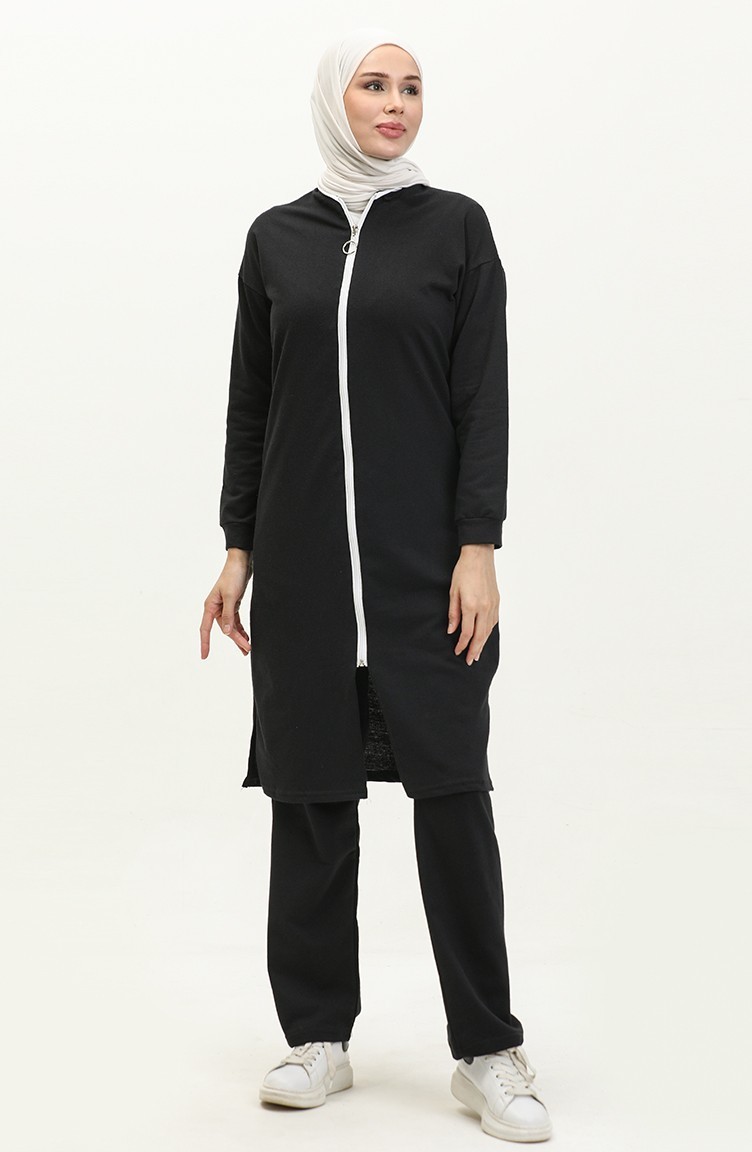 Fermuarlı Eşofman Takım 3044-06 Siyah