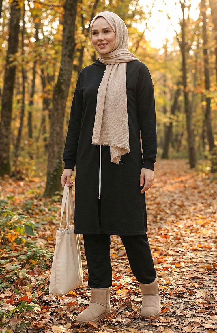 Günlük yaşantınızda konforu ve şıklığı bir arada arayanlardansanız, bu özel pamuklu ikili takım tam size göre. Modern tesettür giyim anlayışıyla tasarlanan bu set, dört mevsim boyunca gardırobunuzun vazgeçilmez bir parçası olmaya aday.Kumaş Özelliği: Yüksek kaliteli pamuklu dokusu sayesinde cildinizin nefes almasını sağlar ve gün boyu ferahlık sunar.Tasarım Detayları: Kapüşonlu sweatshirt formu, yanlarda bulunan zarif yırtmaç detayları ve rahat kesim pantolonu ile sportif bir görünüm kazandırır.Kullanım Alanı: Hem evde hem dışarıda, yürüyüşte veya alışverişte rahatça kullanabileceğiniz fonksiyonel bir yapısı vardır.Kombin Önerisi: Görseldeki gibi desenli bir şal ve beyaz sneaker ayakkabılar ile tamamlayarak sokak stilinin en şık temsilcisi olabilirsiniz. Sefamerve kalitesiyle sunulan bu takım, dayanıklı yapısı sayesinde formunu uzun süre korur. Rahat kalıbı hareket özgürlüğünüzü kısıtlamazken, sade tasarımıyla zahmetsiz bir zarafet sunar.