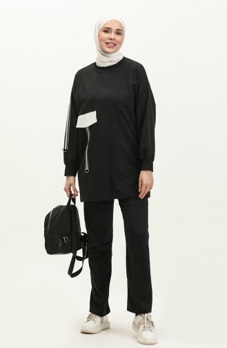 Siyah renktedir. Pamuk dokuma kumaş. Sade. Astarsız. Uzun kolludur. Sıfır yaka detayı ile rahat kullanıma sahiptir. Mevsimlik. Spor. Kadın. Büyük beden seçeneği mevcuttur.
