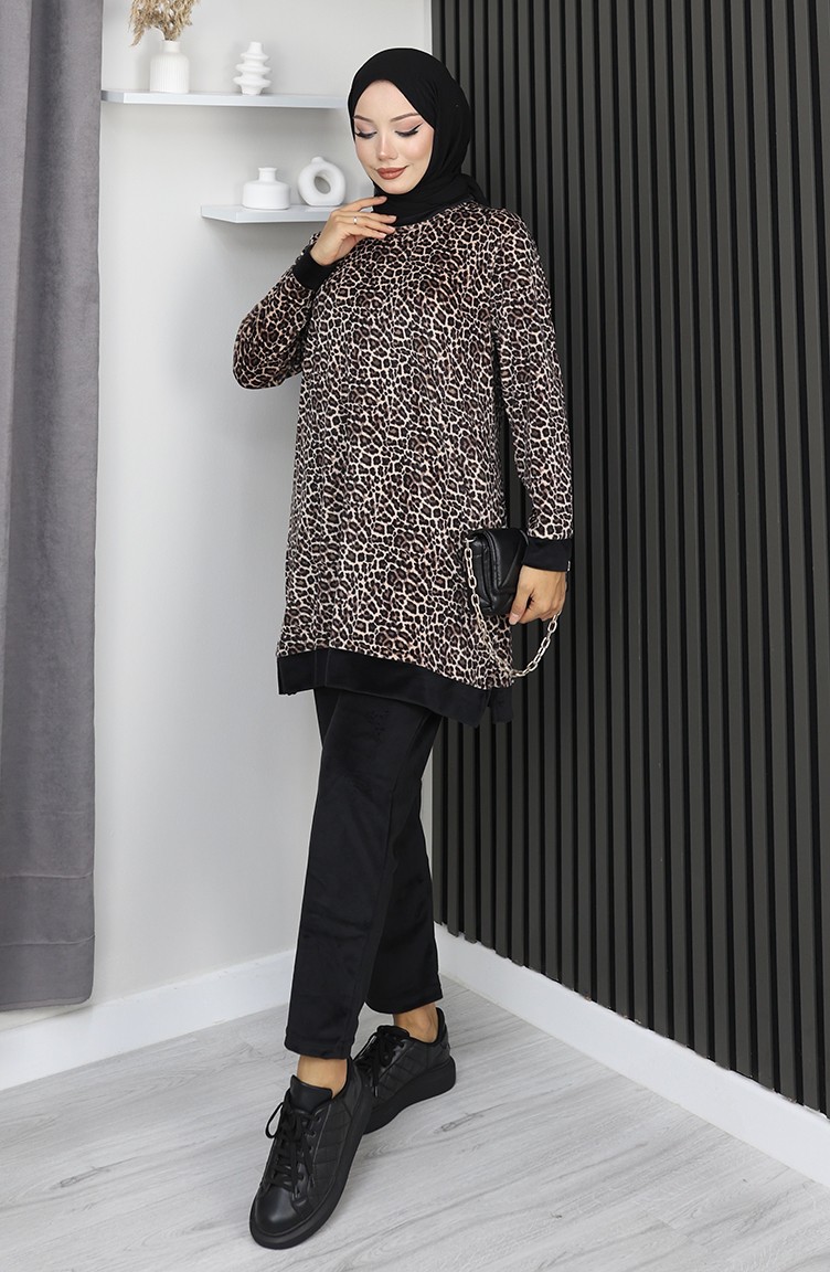 Leopar Desenli Eşofman Takım 96002-01 Kahverengi