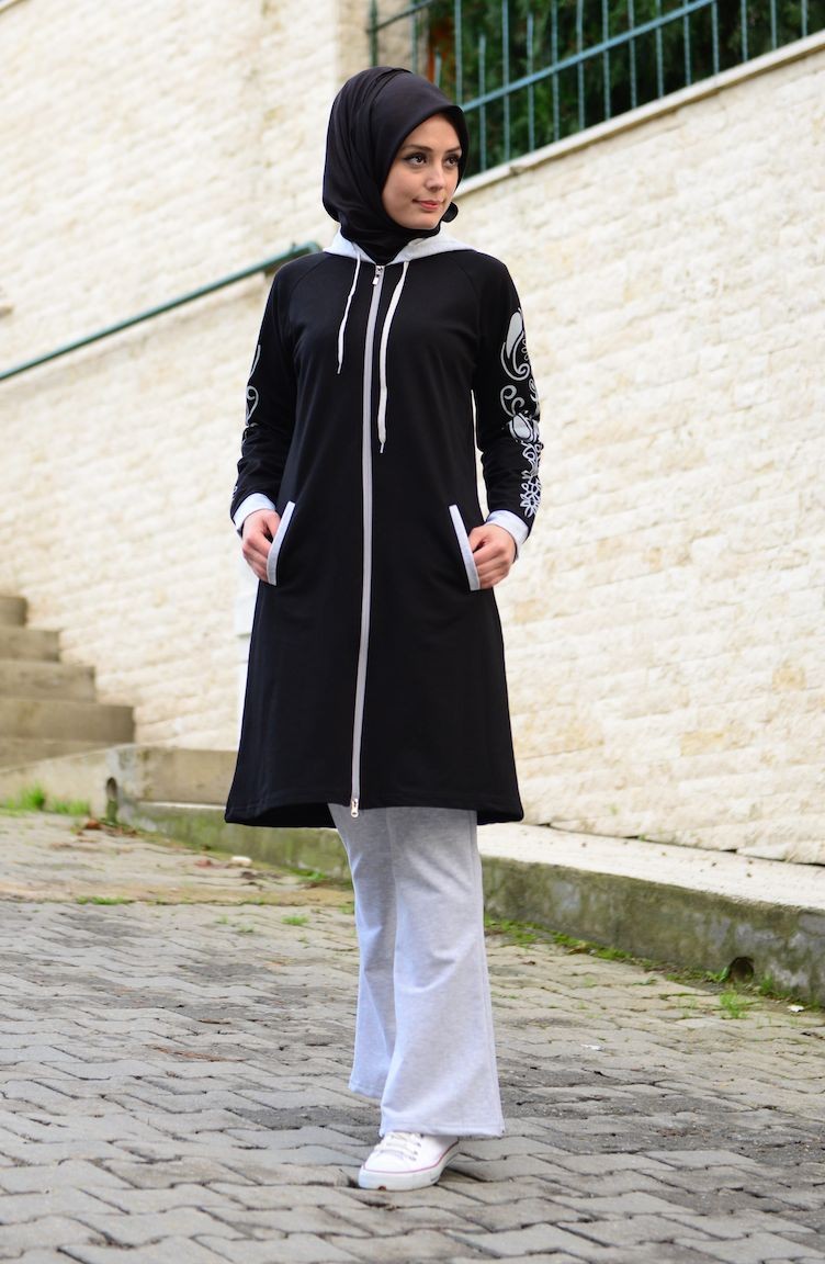 Tesettür Eşofman Takım 60115-07 Siyah Gri