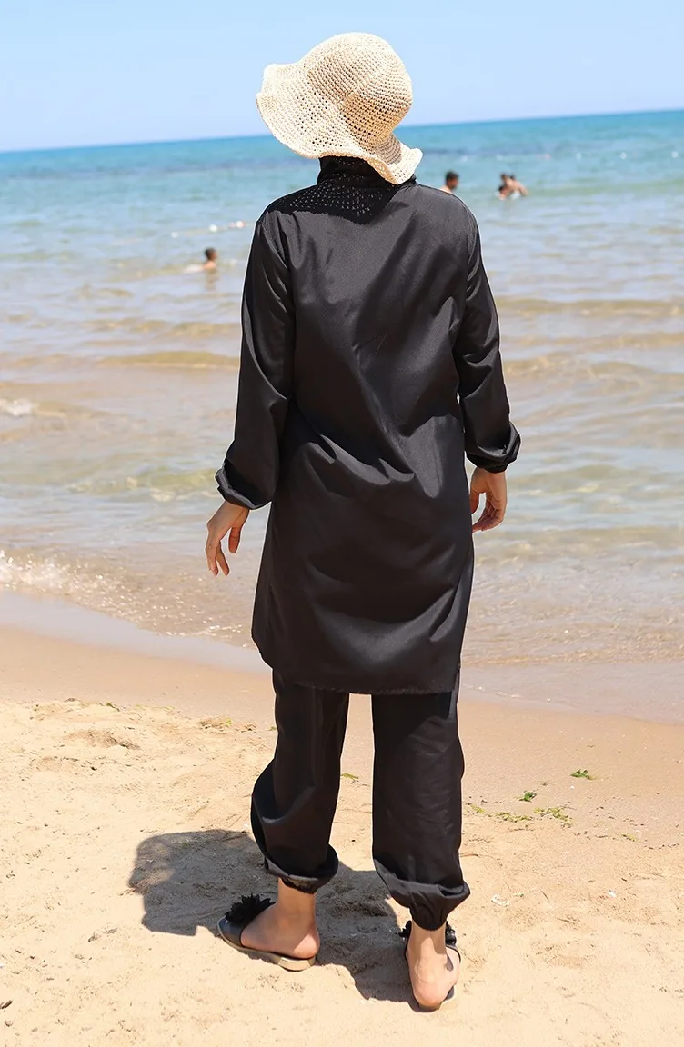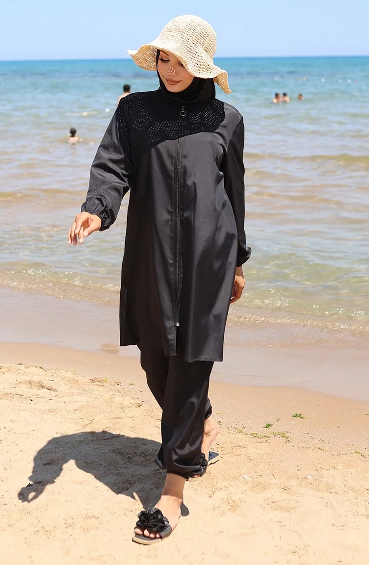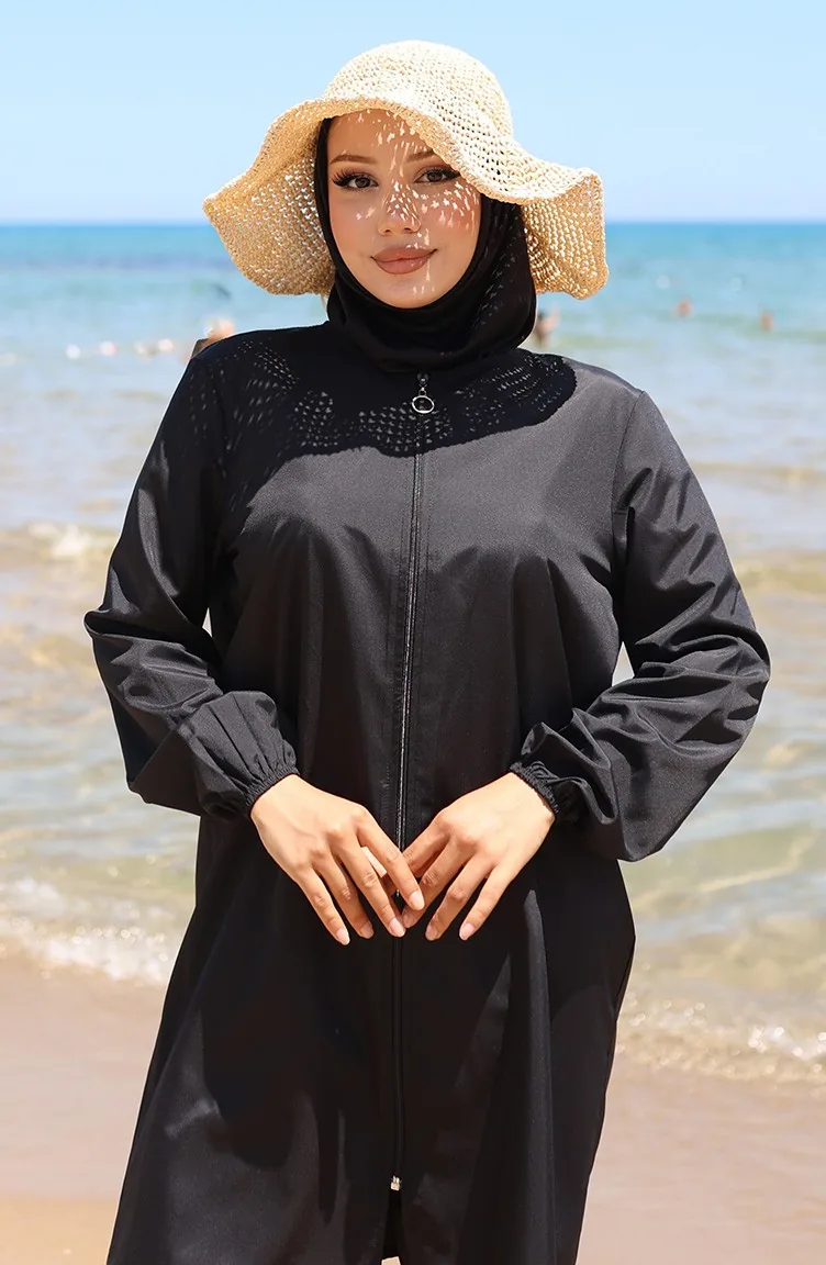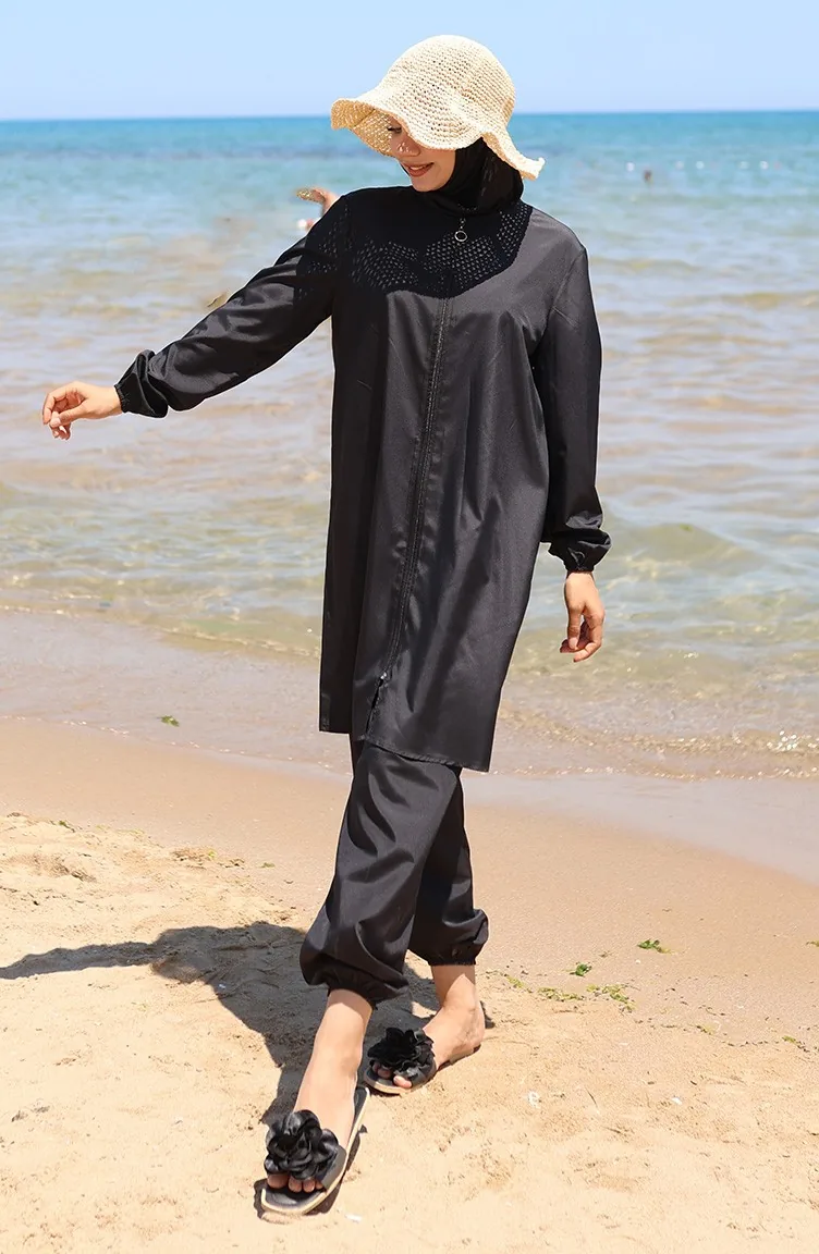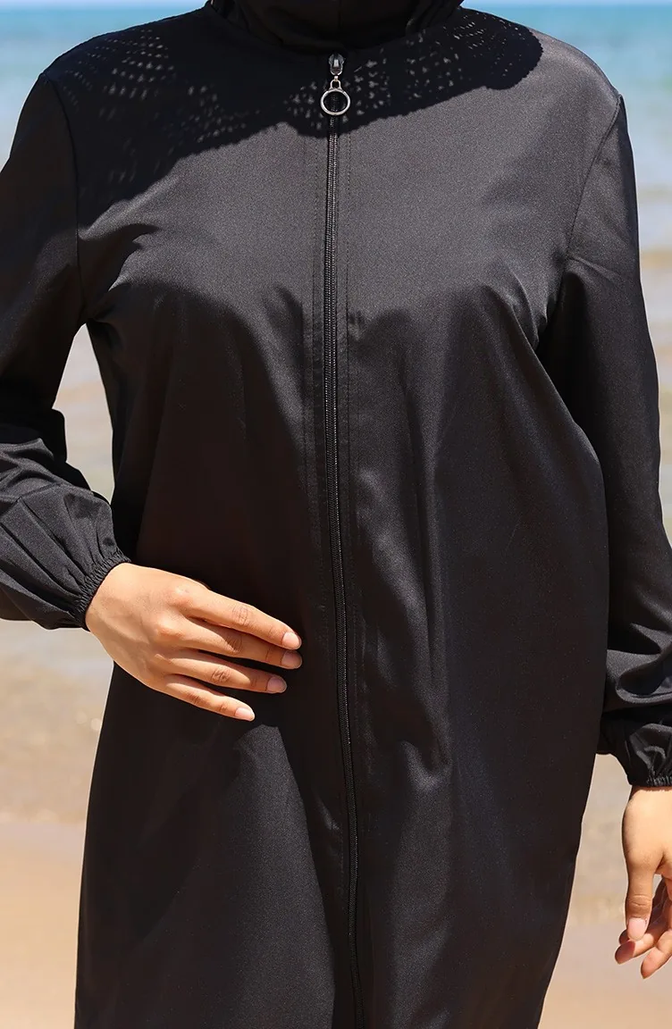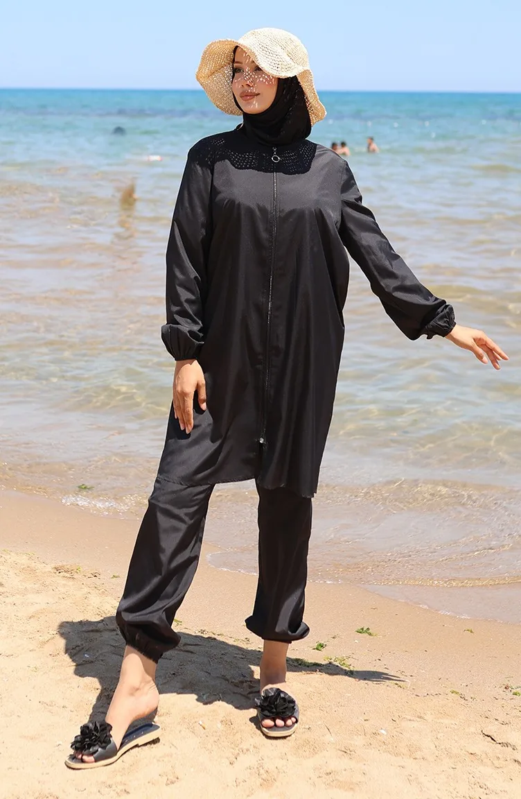 Kumsal Fermuarlı Tesettür Mayo Bone Hediyeli 9003-04 Siyah