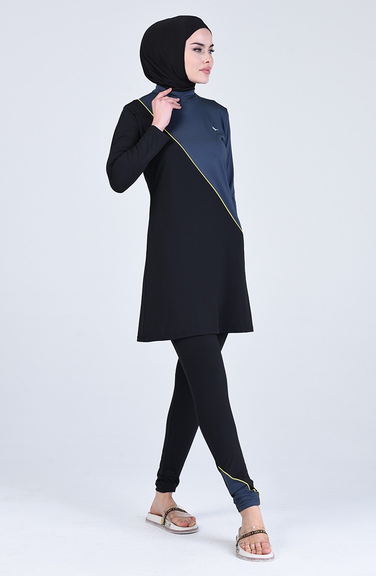 Uzun Kollu Tesettür Mayo 20128-01 Siyah
