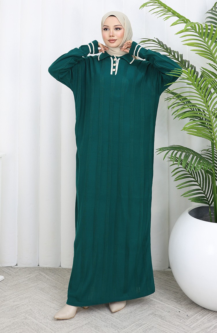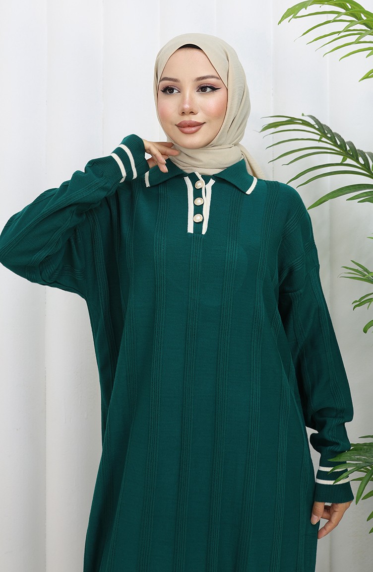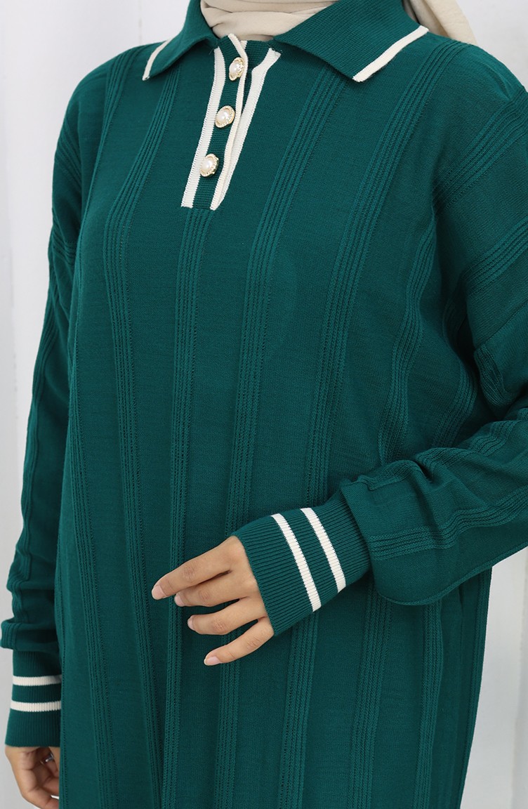 Triko Polo Yaka Düğmeli Elbise 1135-04 Petrol