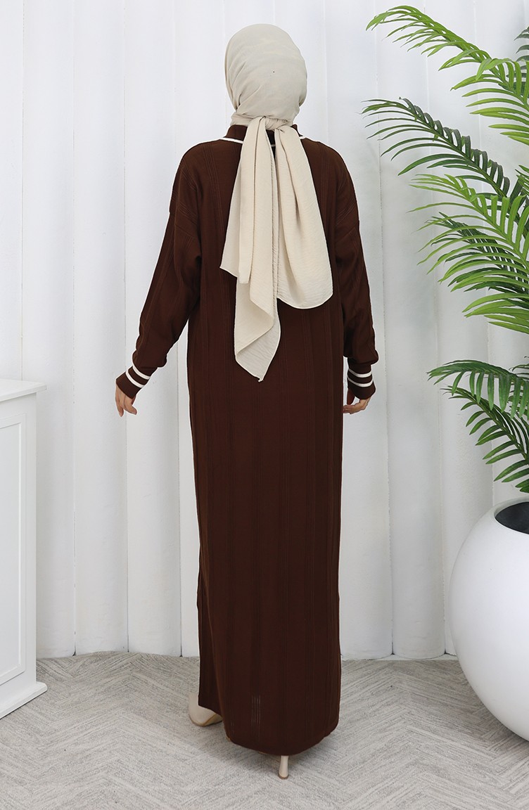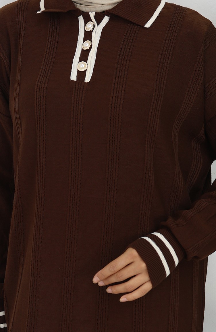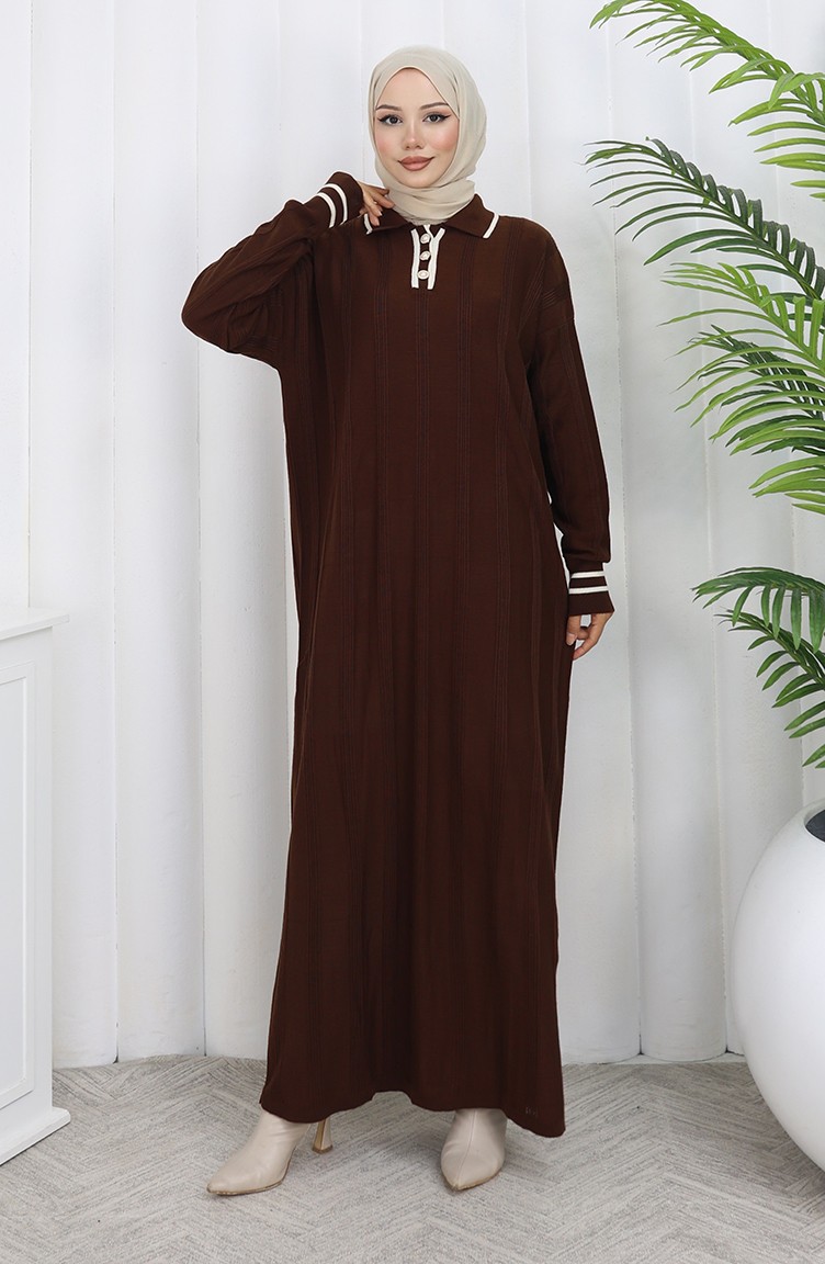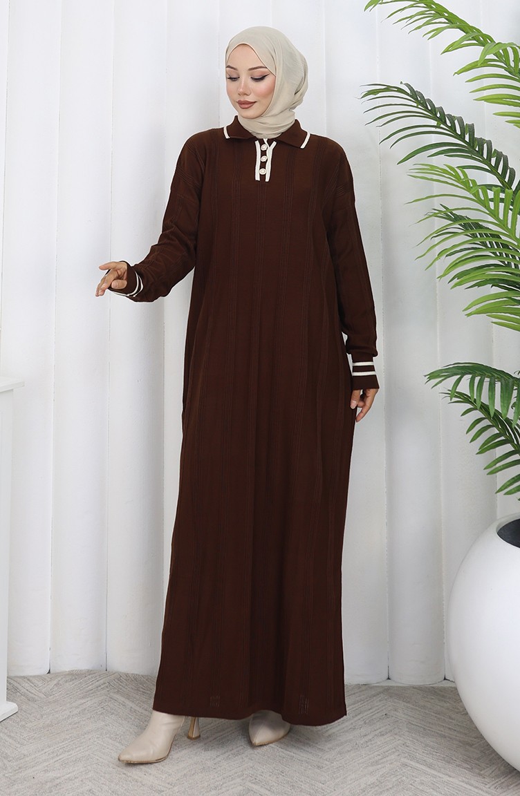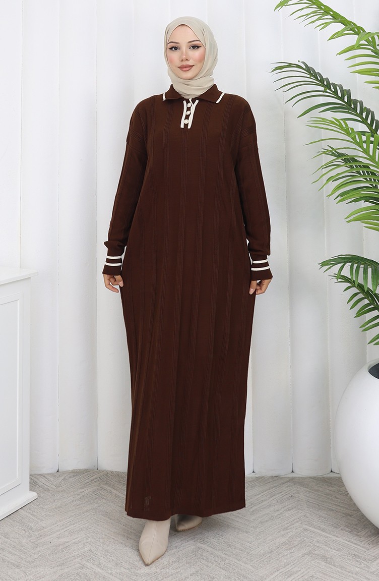 Triko Polo Yaka Düğmeli Elbise 1135-06 Kahverengi