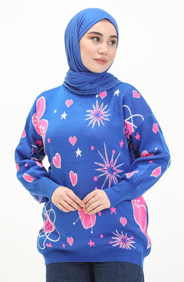 Triko Desenli Kazak 80059-03 Saks Pembe